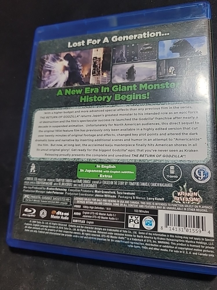 Godzilla 1984 Return Of Godzilla Blu-ray. Condition is Like New. Shipped with USPS First Class.