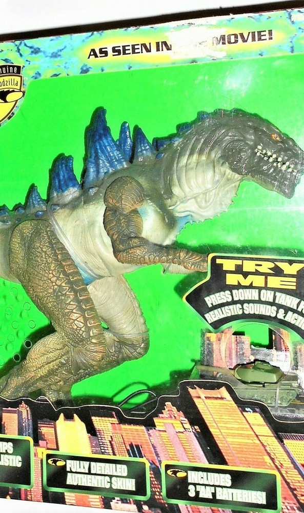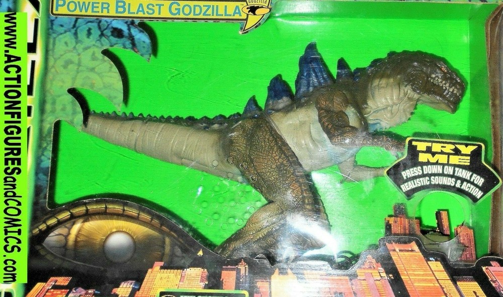All items sold by ACTIONFIGURESandCOMICS are 100% Guaranteed and returns are accepted for any reason. Toy Biz GODZILLA 1998 19 inch POWER BLAST GODZILLA NEW - still factory sealed in the original package Electronic Rumble n Roar. Press tank inside package to see Godzilla's mouth open with audio roar while the entire box rumbles and shakes.(Still works!) Condition : overall good condition box and window, some shelf wear. figure is excellent and still works when pressing the tank threw the 'try me' opening Figure Size : 19 inch long head to tail Package size : 15 inch x 12 inch x 4.5 inch CLICK HERE for several other figures and SAVE on Shipping Costs! Combined shipping costs for the USA: 39.95 Priority mail due to the large size and weight of the Parcel. shipping costs to All other destinations 79.95 airmail due to the large size and weight of the parcel