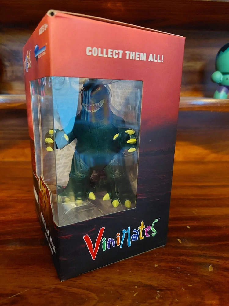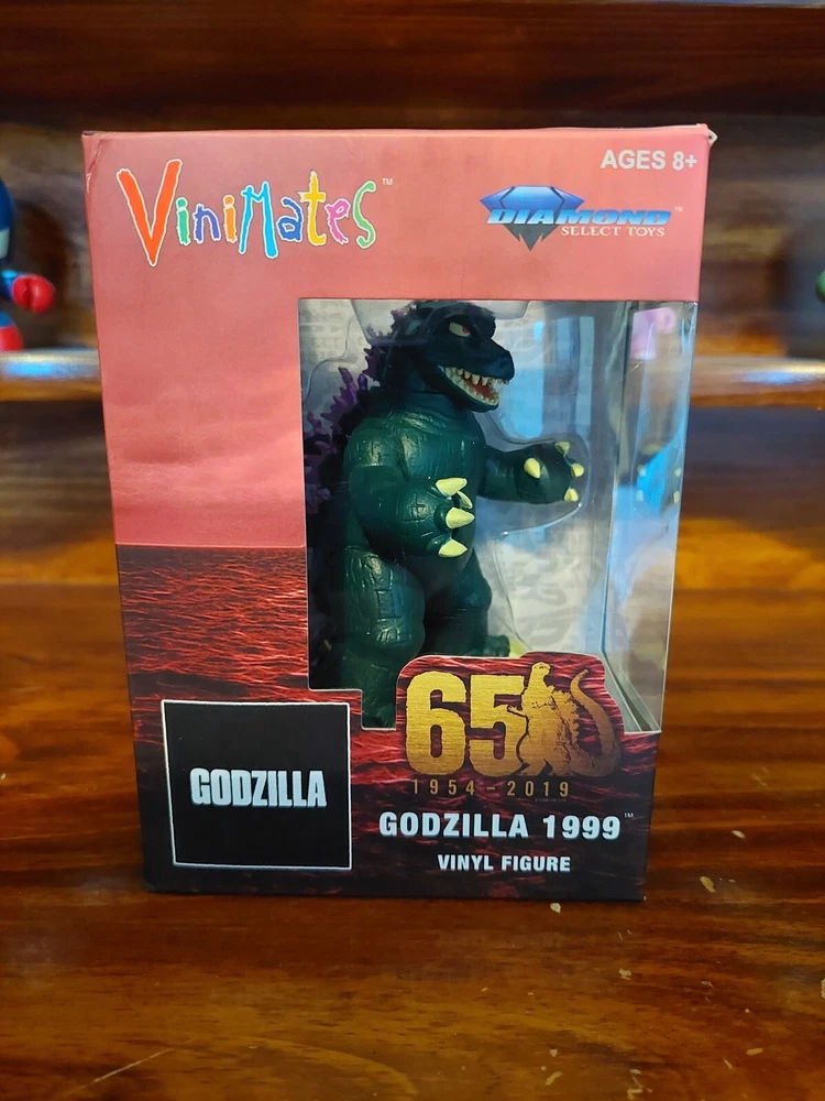 This listing is for the BAM Exclusive 65th Anniversary Godzilla 1999 Vinyl Figure , manufactured by Vinimates a division of Daimond Select Toys. This figure is new in the box has never been opened has a slight ding on the front to left corner see pics , will be a great addition for the Godzilla Collector. Please check out our other listing and request a total when purchasing multiple items and we will do our best to combine shipping. Please note when buying comics and toys it is hard for us to ship them together and maintain damage free travel to you. Thank you for stopping by please ask any questions before buying!