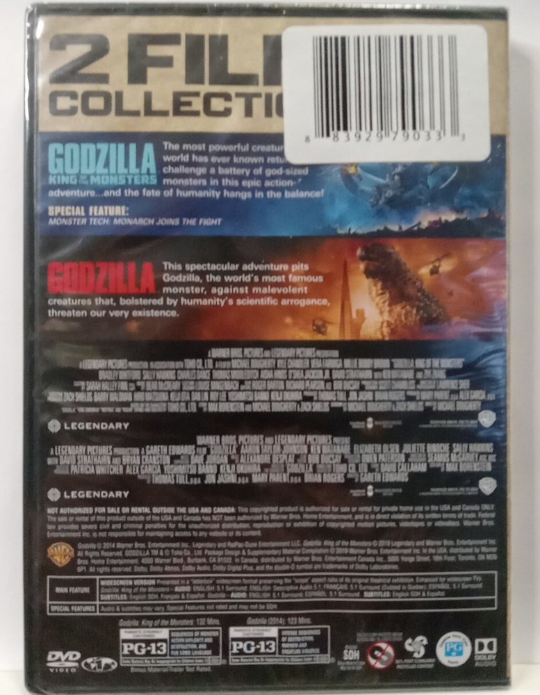 This DVD set includes two action-packed films featuring everyone's favorite giant monster, Godzilla. The first film, simply titled Godzilla, is a thrilling adventure that pits the iconic creature against a host of other monsters. The second film, King of the Monsters, sees Godzilla once again battling foes to protect the world. This DVD set is a standard edition with NTSC video format and English subtitles, and comes in a tall/DVD case. The rating is NR (not rated) and the subtitle language is English. It is not a former rental and was produced in the United States by Warner Home Video. Fans of the action/adventure and horror genres will love this set, which includes features such as subtitles and Region 1 (US, Canada) DVD code.