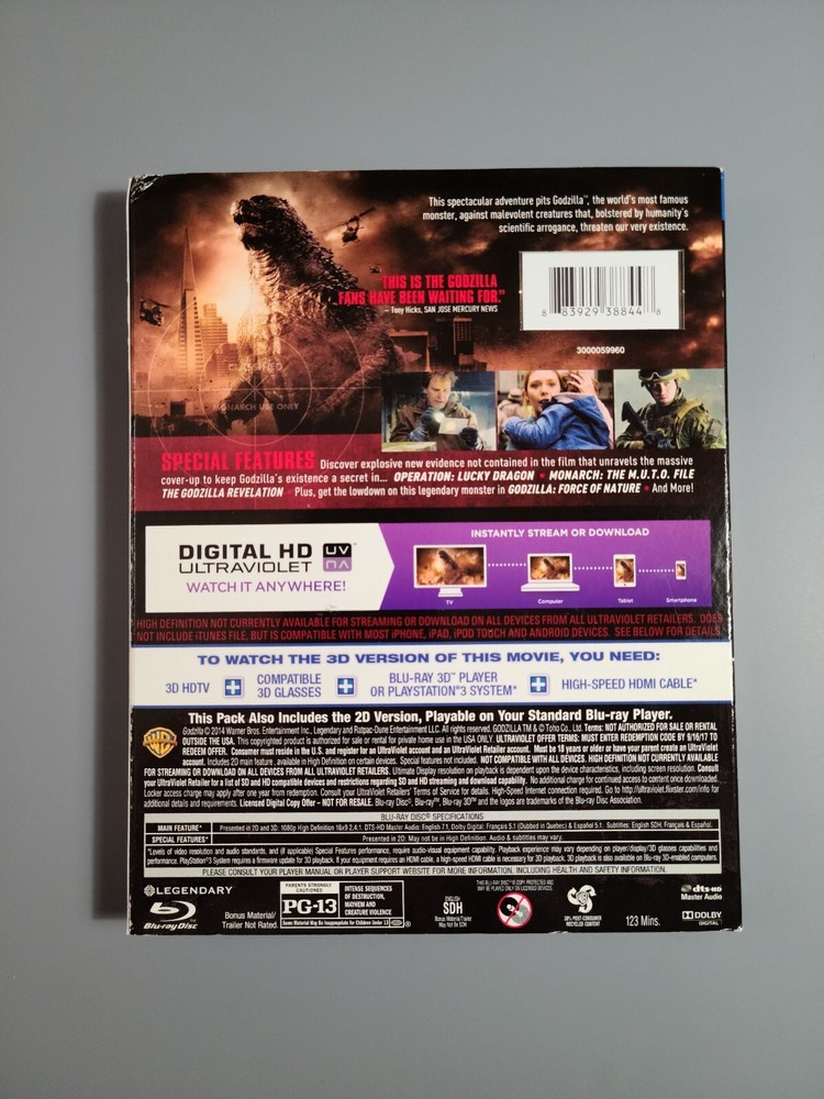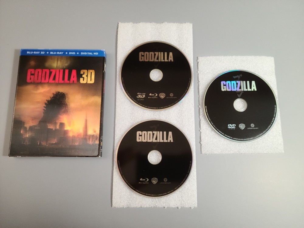 *** Blu-ray 3D included for those interested *** Godzilla (2014) Blu-ray 3D + Blu-Ray + DVD – Excellent Condition! - Official USA Release - 3 Disc Set w/Slipcover - No Digital Copy included. Up for sale is the Godzilla 2014 movie. The Blu-ray is fully functional and in excellent condition (seems like new to me). This eBay auction is perfect for those interested in “3D” (standard 2D Blu-ray & DVD version included). Obviously, you’ll need the proper equipment to watch the movie in 3D. Please feel free to ask any questions. Buy with confidence & thanks for looking!!
