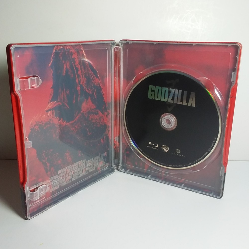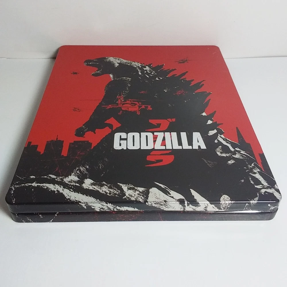 Godzilla 2014 FYE Exclusive Blu-ray Steelbook Case . The case does show scratches and a dent on the back lower bottom edge. Shipped in a box.
