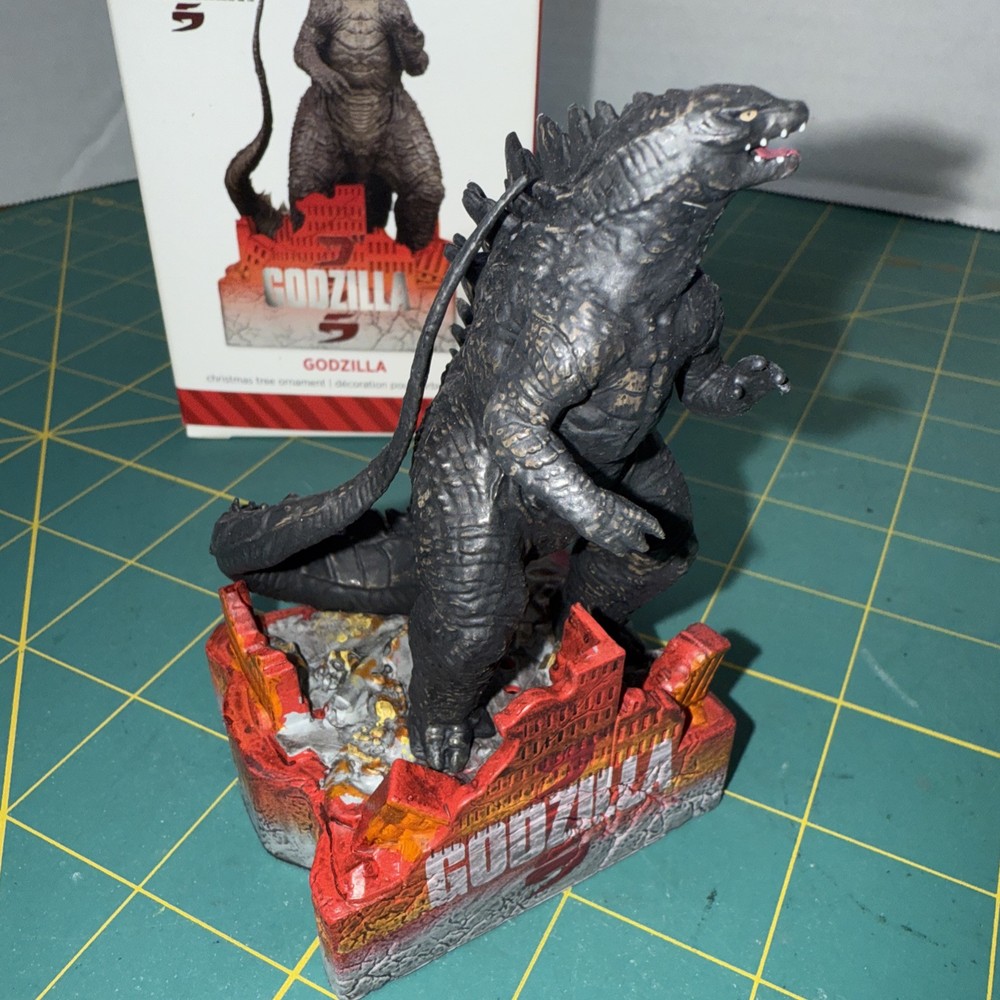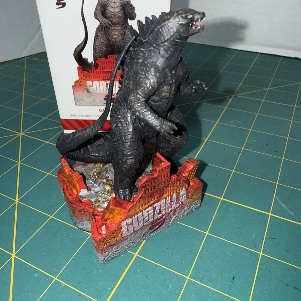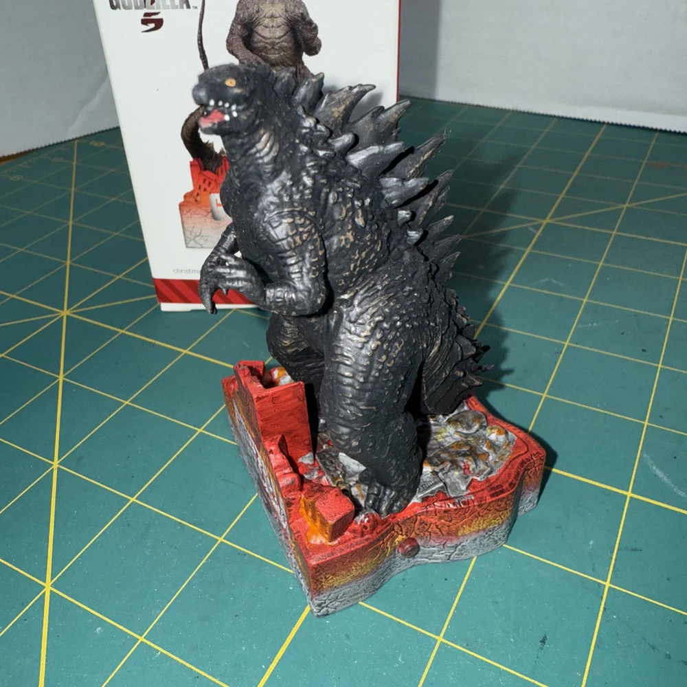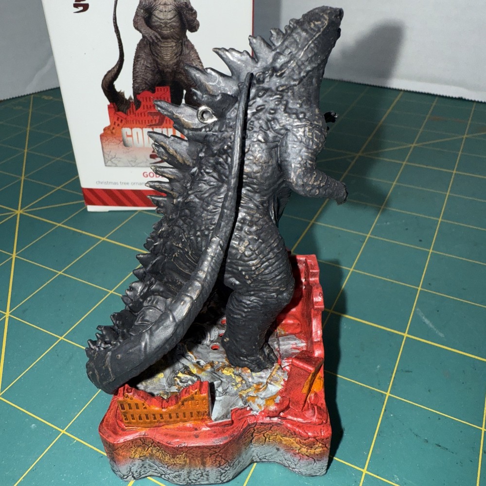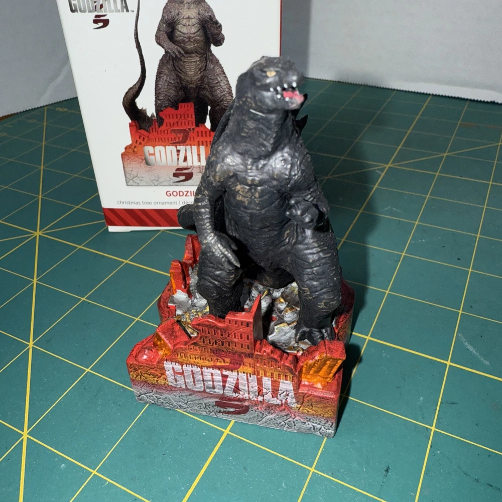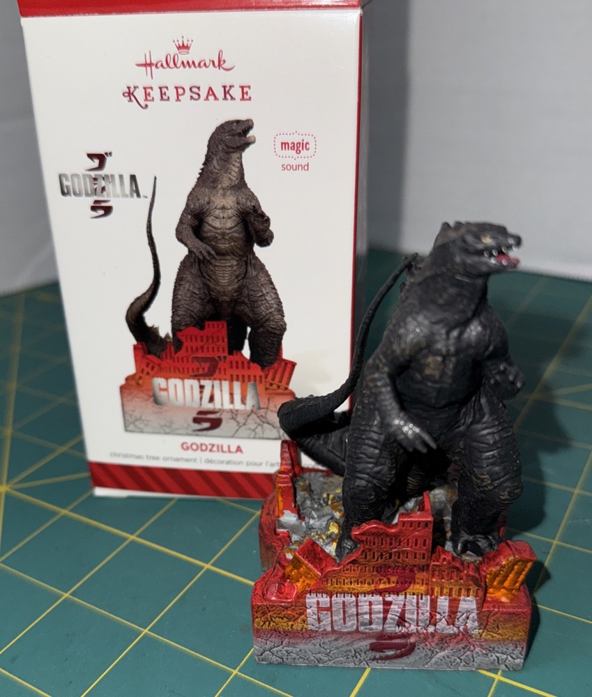 New battery will be required. This was one of my favorite ones to play with This is a Hallmark Keepsake ornament from 2014 featuring a figural design of Godzilla, a monster from the Godzilla franchise. The ornament is multi-colored and depicts Godzilla boxing. It is an original licensed reproduction and was designed by Orville Wilson. The ornament is made of molded and assembled parts and measures 4 inches in height, 2.5 inches in length, and 2.125 inches in width, weighing 5 oz. It is a great addition to any Christmas collection and makes a unique gift for fans of the franchise.