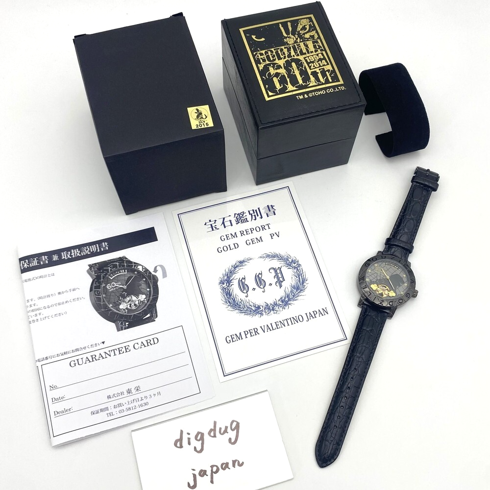 Godzilla 60th Anniversary Watch 1954 Limited Serial Number Original Box NEW Description Condition: New GODZILLA Superb design limited edition 60th.1954-2014 memorial watch [Set contents] Watch, special box, gem identification certificate [Case size] (approx.) Diameter 40x12mm [Belt] (approx.) Up to 20cm [Weight] (approx.) 65g [Materials] Brass, crystal glass, cowhide, natural diamond [Movement] Manual winding [Specifications] Waterproof for daily life, average monthly difference ±90 seconds *Because it is a manual winding type, please be careful not to overwind the screw. ・Godzilla skin design on the strap and case ・World-famous brand [GODZILLA] engraved on the frame ・Mechanical watch balance movement (skeleton design) ・6 luxurious diamonds ・60th anniversary logo engraved on the back ・ Serial number engraved on the back to prove that only 1954 pieces are made in the world ・Comes in a special box with a special logo embossed ■Case size: (approx.) diameter 40x12mm ■Strap: (approx.) up to 20cm ■Weight: Approx. 65g ■Materials: Brass, crystal glass, cowhide, natural diamonds ■Movement: Manual winding ■Specifications: Waterproof for daily life, average monthly difference ±90 seconds All my products are 100% Authentic. Please feel free to contact us if you have any question. Shipping Please note that for buyers residing in remote areas, an additional 'Remote Area Shipping Fee' may apply. If applicable, this fee is the responsibility of the buyer. Shipping is only available to the address registered in eBay. If you want us to send another address, please change your address on eBay and then place an order. Shipping is available from Monday to Friday. Weekends are not available because freight (shipping) companies are closed. We do not mark merchandise values below value or mark items as "gifts" - Japan, US and International government regulations prohibit such behavior. About Importer's Obligation Import duties, taxes, and charges are not included in the item price or shipping cost. These charges are the buyer's responsibility. Please check with your country's customs office to determine what these additional costs will be prior to bidding or buying. Thank you for your understanding.