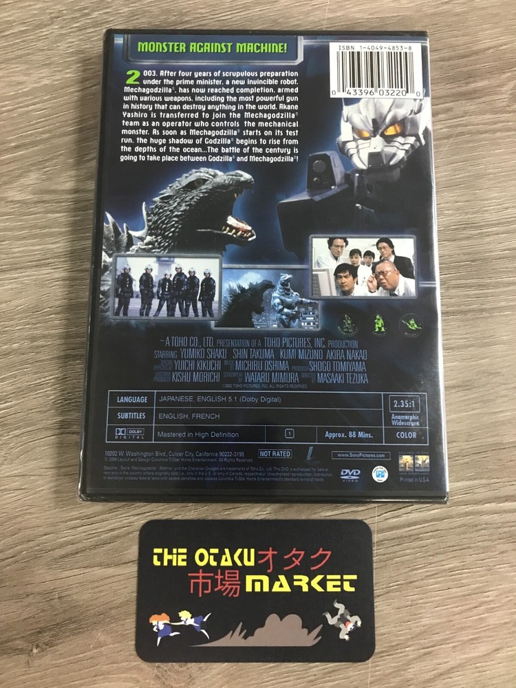 This video is Brand New and factory sealed. -------------------------------------------------------------------------------------------------------------------------- Run Time........... 88 minutes Audio................. English / Japanese Subtitles............. English / French Region Code...... 1 Screen Ratio...... 16:9, widescreen -------------------------------------------------------------------------------------------------------------------------- Synopsis: 2003. After four years of scrupulous preparation under the prime minister, a new invincible robot, Mechagodzilla, has now reached completion, armed with various weapons, including the most powerful gun in history that it can destroy anything in the world. Akane Yoshiro is transferred to join the Mechagodzilla team as an operator who controls the mechanical monster. As soon as Mechagodzilla starts on its test run, the huge shadow of Godzilla begins to rise from the depths of the ocean... the battle of the century is going to take place between Godzilla and Mechagodzilla! -------------------------------------------------------------------------------------------------------------------------- Shipping: United States Media Mail................. $5.75 / $1.00 as an additional item Ground Advantage..... $8.25 / $3.00 as an additional item Priority Mail................ $11.00 / $2.00 as an additional item Combined Shipping: United States ***This will not work on a smartphone using eBay's app. If that's your option just add all items using the cart to make 1 invoice and any combined shipping rates will be refund at the time of shipment*** Place items into shopping cart. When done shopping, hover over your shopping cart icon at the top right of the page. Click "view cart" from the dropdown box. Click the "request total" hyperlink located at the top right of the group of items you're buying from me. Click "commit to buy & submit request" You'll receive the final invoice shortly thereafter, typically within 12 hours. ***do note that once you do #5 the quantity chosen is automatically removed from inventory, so there's no fear of someone else getting it before you've paid for it. Combined Shipping: International Combined shipping is available, please ask for a quote as eBay's system will no do it automatically.... Any questions please feel free to ask :^)