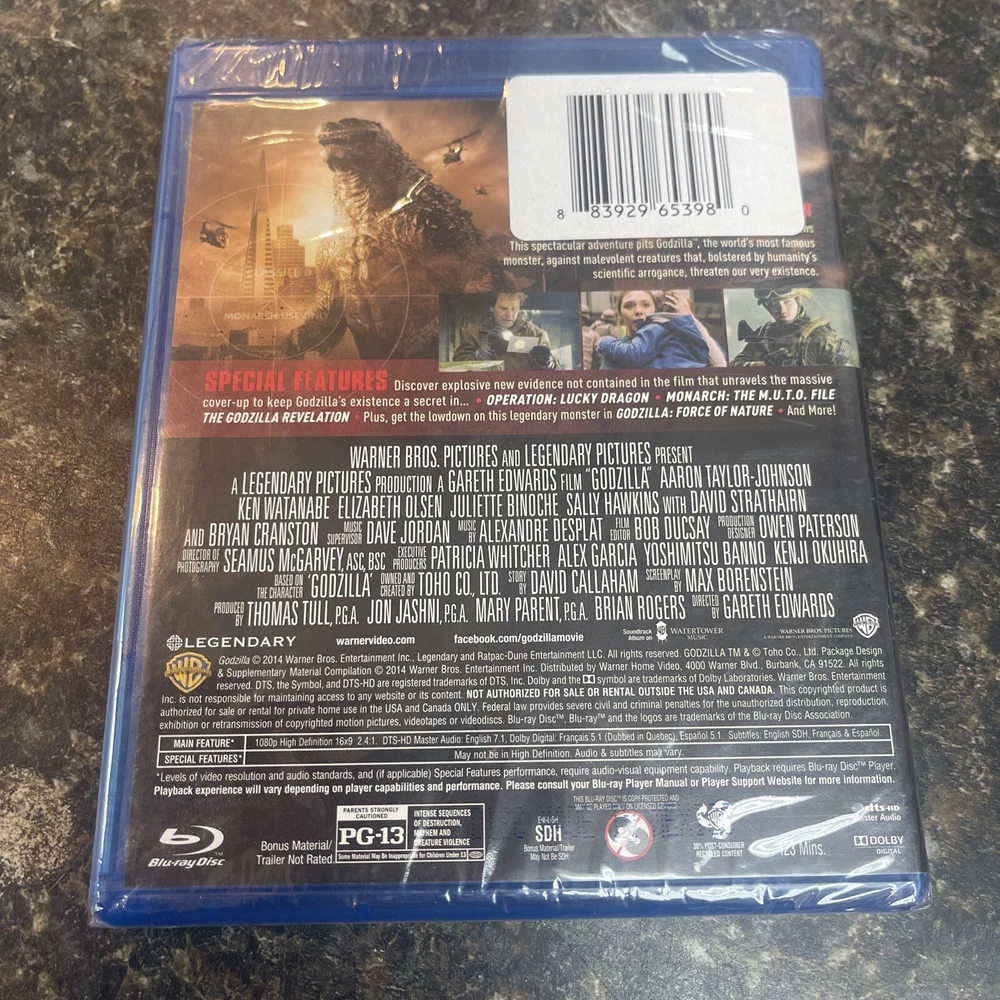 Godzilla (Blu-Ray, 2014) Aaron Taylor-Johnson Bryan Cranston Elizabeth Olson NEW.