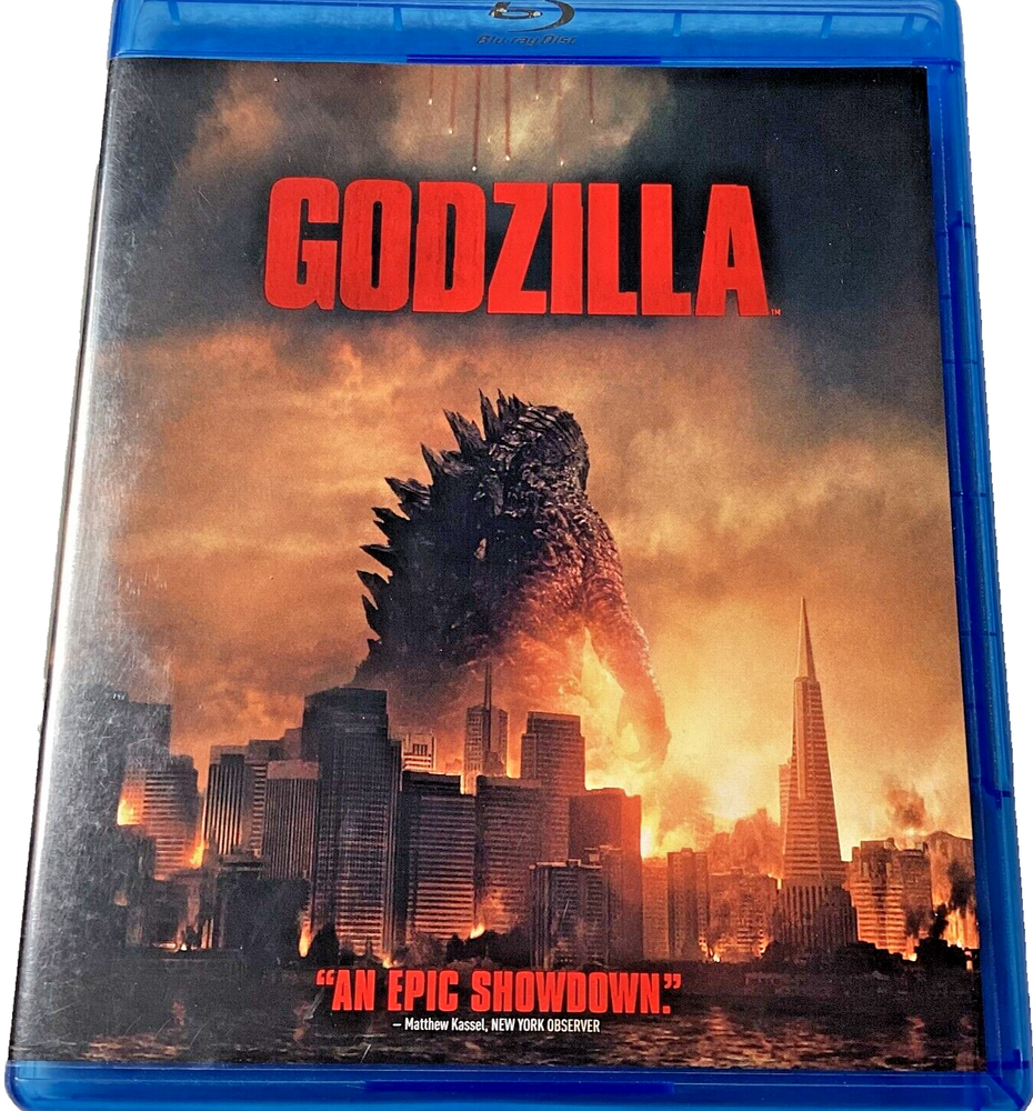 The product is "Godzilla" on Blu-ray, released in 2014. Directed by Gareth Edwards, it falls under the Science Fiction genre with a PG-13 rating. The Blu-ray includes English, French, and Spanish subtitles, and is produced by Warner Home Video in a standard edition Blu-ray case. The film is a horror sub-genre featuring Godzilla as the main character.