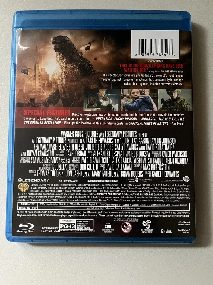 Gently used 2 Disc set Blu-ray & DVD of 2014 version of Godzilla