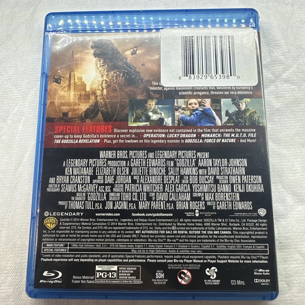 This classic movie on Blu-ray features the epic battle between Godzilla and a group of scientists who are trying to save the world from the monster's destruction. The 2014 film stars Bryan Cranston, David Strathairn, Ty Olsson, Elizabeth Olsen, Ken Watanabe, Sally Hawkins, Aaron Taylor-Johnson, and Juliette Binoche, and is directed by Gareth Edwards. This 2-disc set includes special features such as a behind-the-scenes featurette, captioned scenes, color viewing, widescreen format, and five featurettes. The disc is compatible with Region A Blu-ray players and DVD Region 1 players. The run time is 123 minutes and the movie is rated PG-13. GW01D