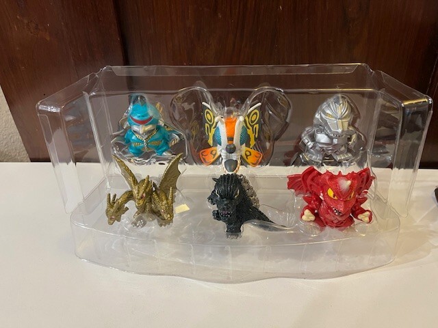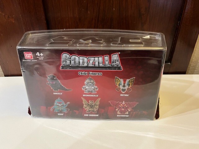 Godzilla Chibi Figures 6 Pack Set New 2013 Bandai Mothra Ghidorah Mechagodzilla Condition: Packaging is damaged due to storage. Packaging has cracks, stains, creases and parts of it is bent. Please view photos before purchasing Most Items Listed were obtained from auctions, estate or rummage sales, so please keep this in mind when purchasing. We usually ship within 2-3 business days of receiving your payment. If you need special shipping arrangements or have any questions about the item let us know by messaging us.