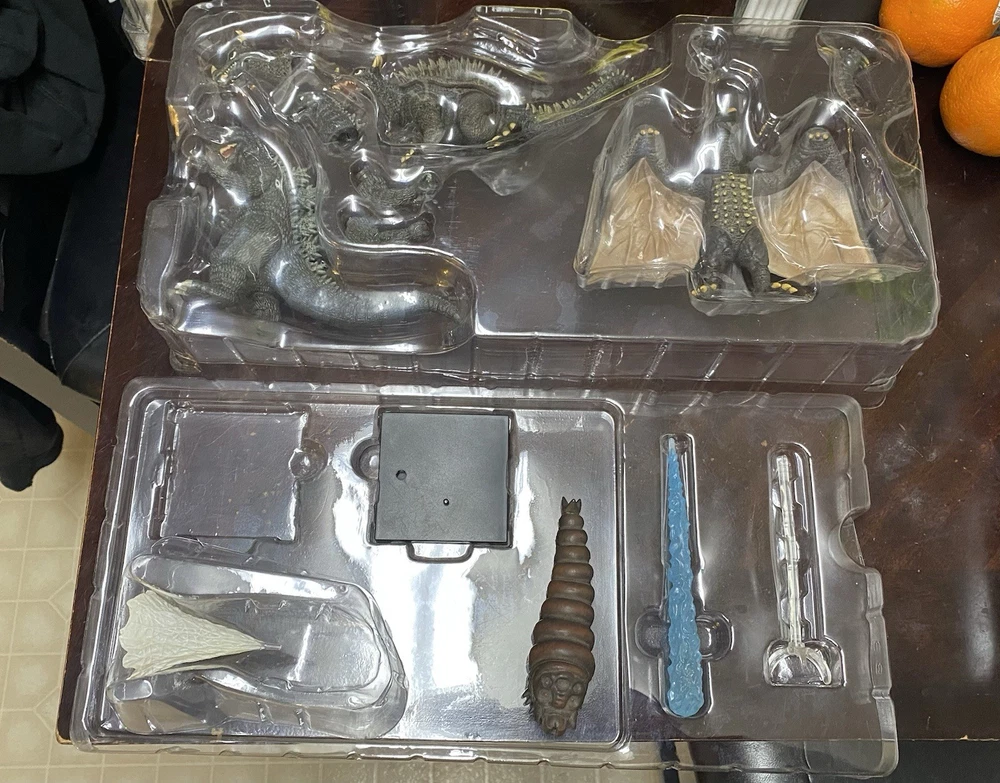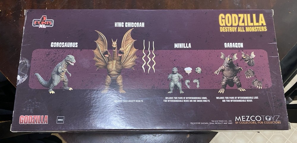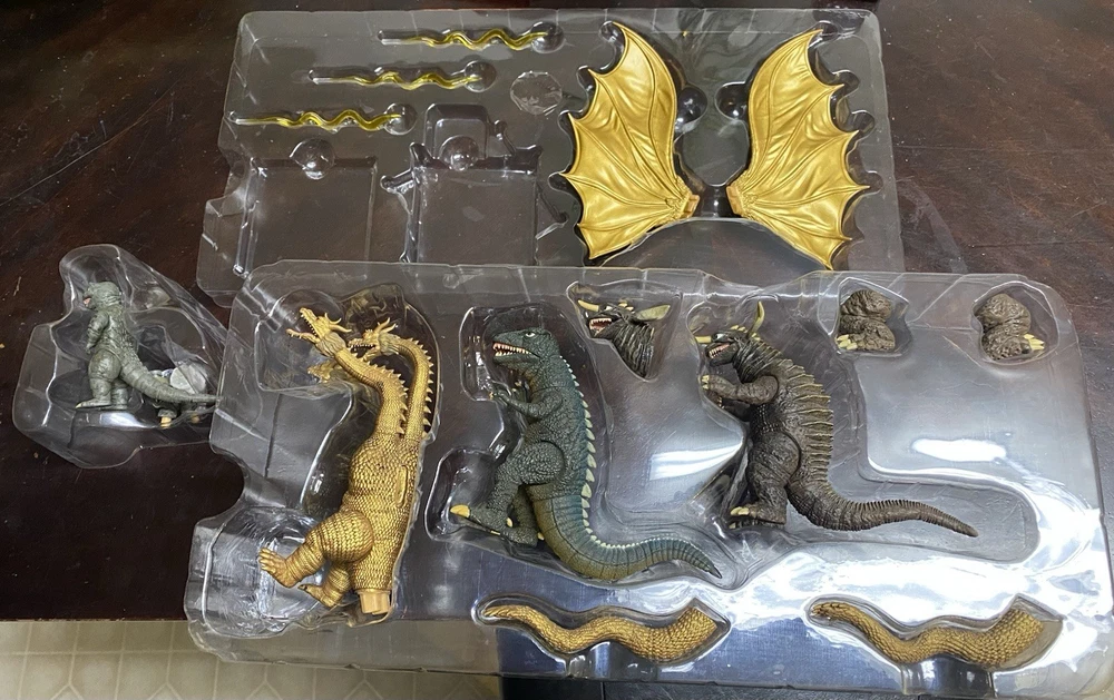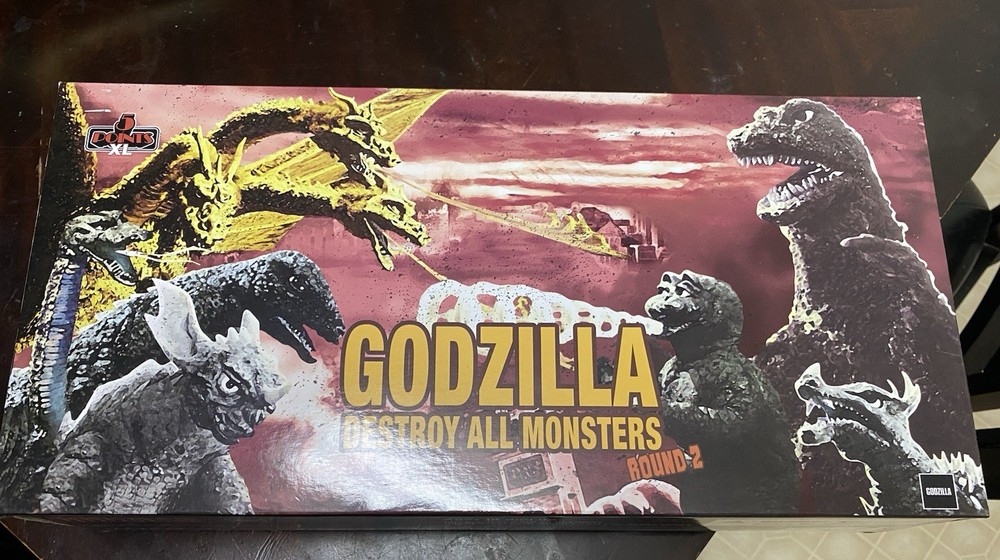 The Godzilla Destroy All Monster Round 1 & 2 Set features action figures of Godzilla and various monsters from the Godzilla franchise. Made of plastic, these collectible toys are boxed and original, representing the iconic character in a fun and imaginative way. This set is perfect for fans of the Godzilla series, offering a unique opportunity to recreate epic battles and displays in their collection.