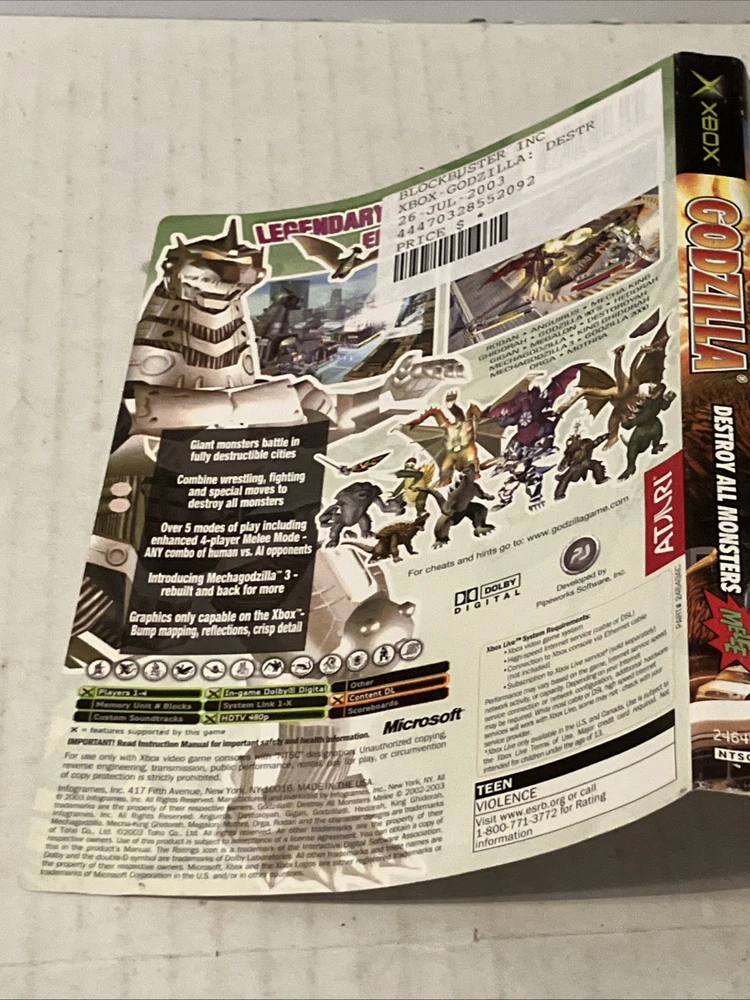 NO DISC. Authentic label and Manual only. Authentic Label with the blockbuster store sticker stuck on the label as shown in pictures. Authentic manual. Both have wear, curling, damage and are in used condition as shown in pictures. See ALL pictures of exactly what you’ll receive. Free shipping is included