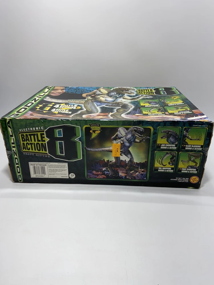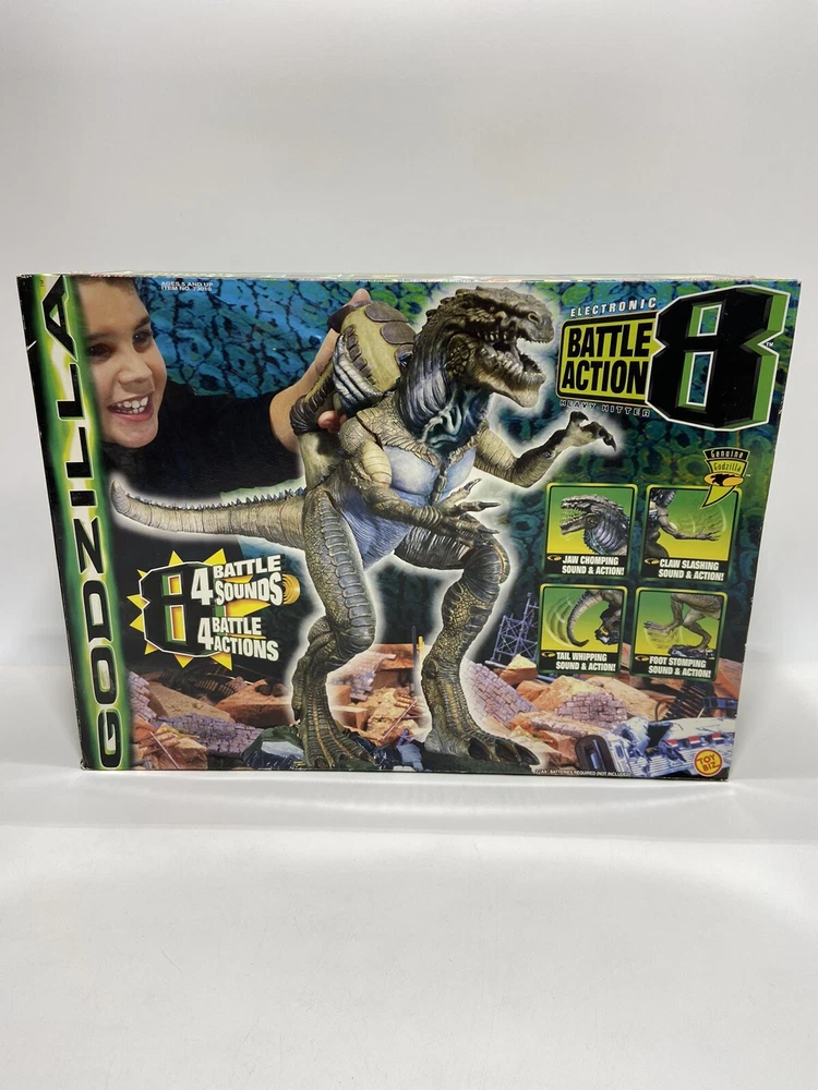 This Godzilla Electronic Battle Action 8 Heavy Hitter from ToyBiz is an exciting addition to any toy collection. With its realistic design and electronic battle action, this toy is perfect for fans of all ages. The item is brand new and comes in its original box, making it a great gift option for any Godzilla or monster toy enthusiast. The toy is manufactured in China and features a theme of Godzilla, making it a great addition to any collection of monsters, robots, and space toys. The age level for this toy is set at 12-16 years, 8-11 years, and 17 years & up, making it a versatile option for a wide range of fans. Please review all photos and ask questions. We do not offer returns. This item is new and was saved by us, so that it could become a treasure for you to own. LOL, but yes many times the box might be dented or opened, so just be aware!