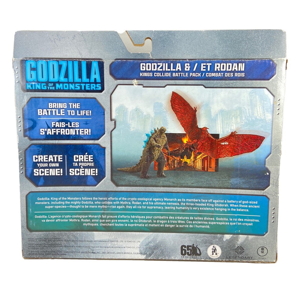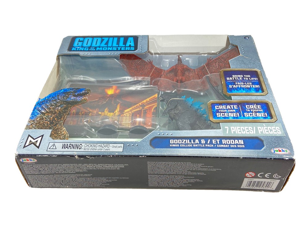 Godzilla & Et Rodan King of the Monsters Playset Create Your Own Scene 7 pieces New in unopened original packaging. One corner has a small tear at top corner. Please look over pictures carefully and email me with any questions before purchasing.