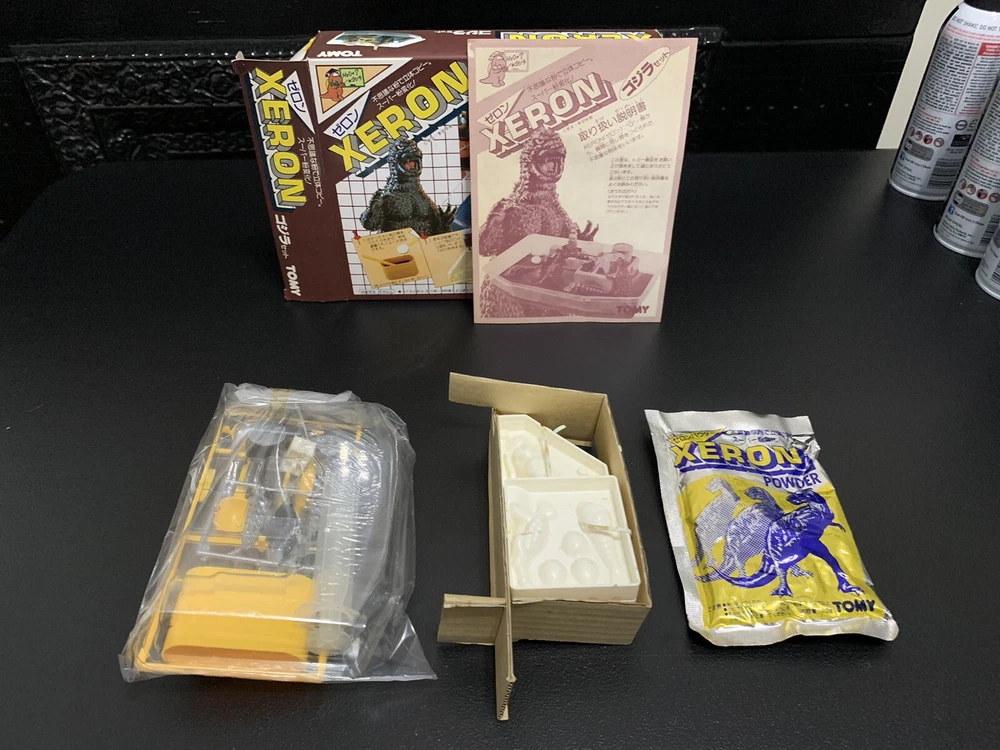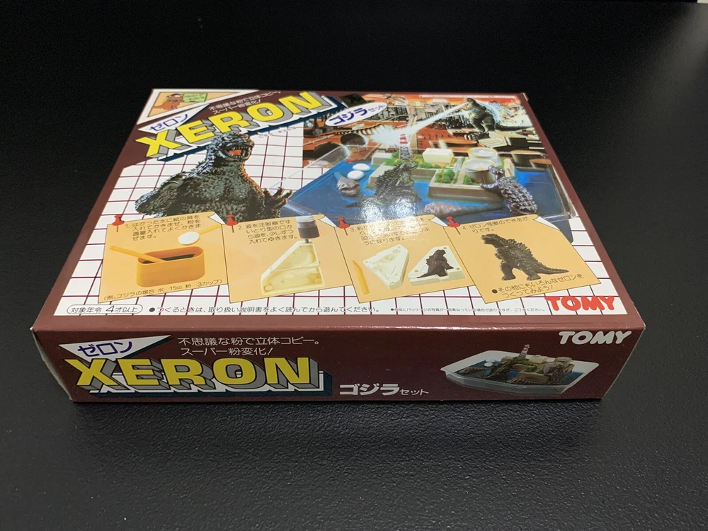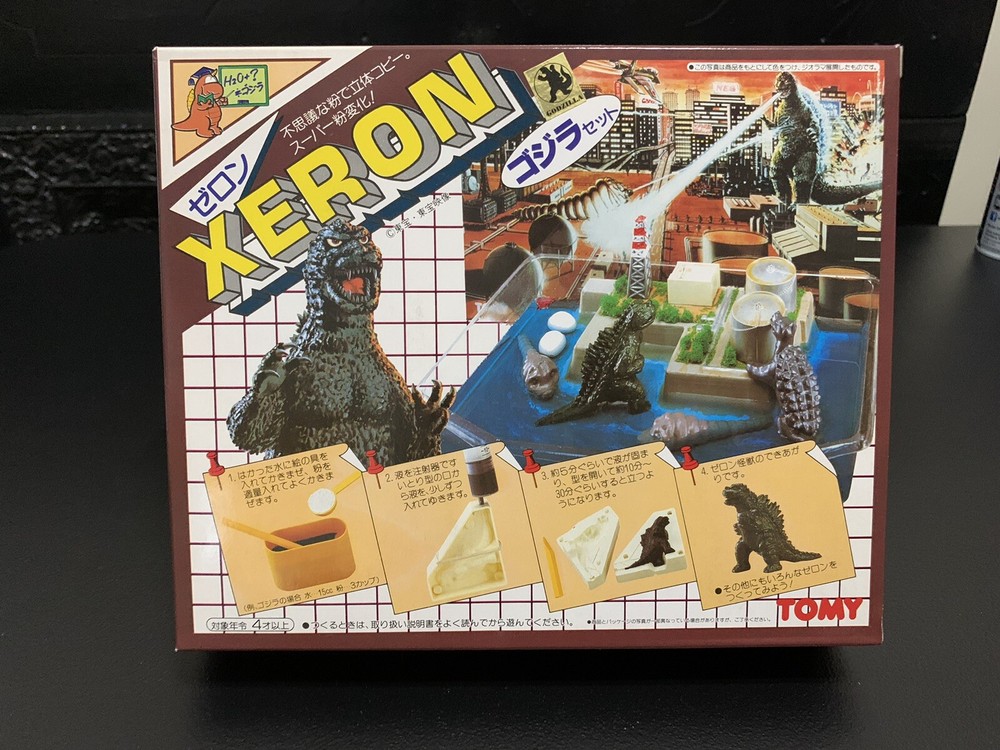 Godzilla Figure Maker Xeron Toy by TOMY, unused in box. The box is in nice overall condition...I can't find a copyright date, but assuming late 1980's due to the artwork. This was never used, please see the photos for the contents of the toy. It includes some tools to mix the solution, a syringe, a bag of power solution (unopened) and molds to make mini Godzilla, Anguirus and Rodan figures. Thanks for looking!