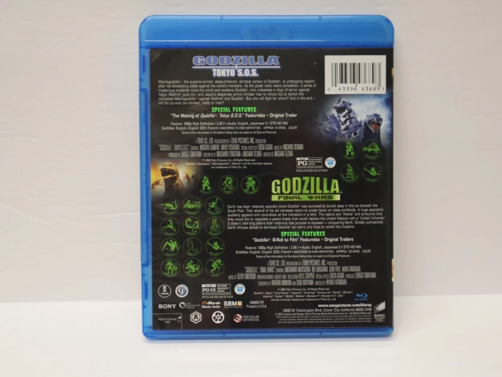 Godzilla Final Wars (2004) & Tokyo S.O.S. (2003) (Blu-ray) CIB Used movies are checked for scratches on back of disk. Don't forget to check out the other listings that we have. Hope you have a wonderf...