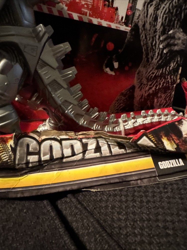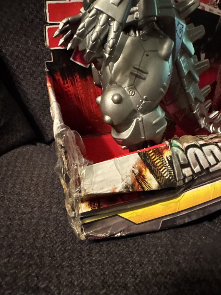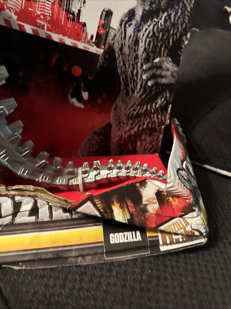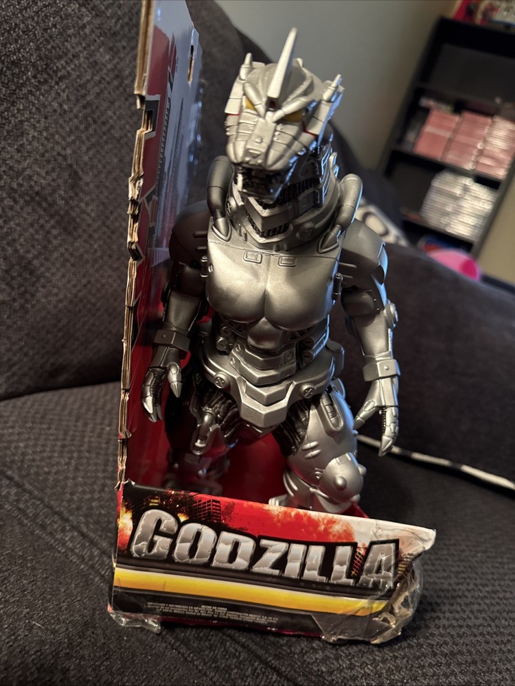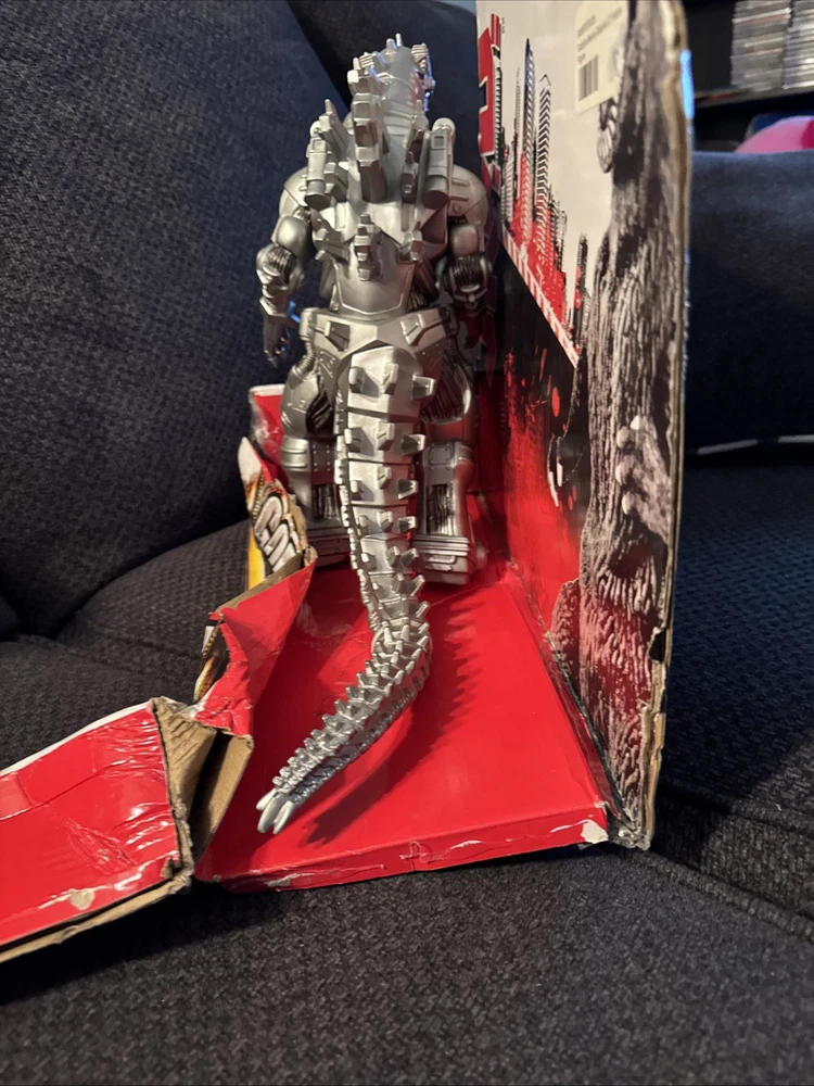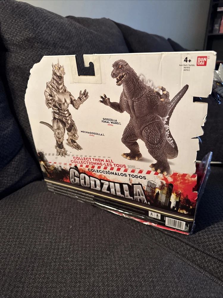 This is a 12" tall Bandai action figure of Mechagodzilla from the Godzilla Final Wars movie released in 1985 by NECA. The product comes in a damaged box but is new. It is part of the Godzilla theme in the Toys & Hobbies category, specifically under Robots, Monsters & Space Toys.