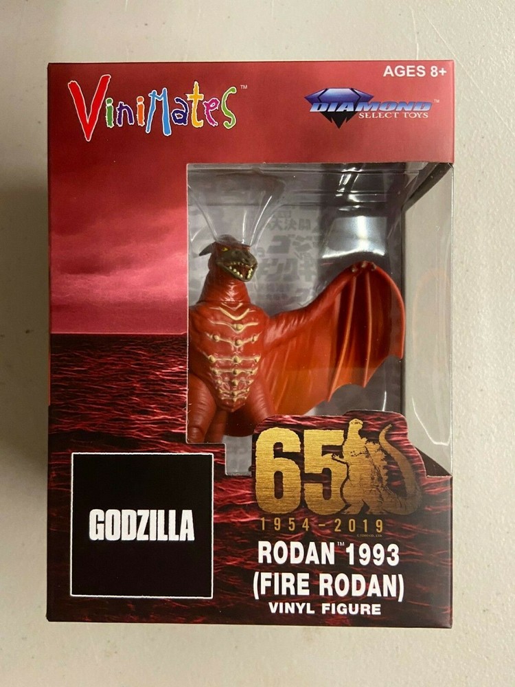 Godzilla Fire Rodan Vinimate New York Comic-Con 2020 Previews Exclusive Rodan returns! As seen in Godzilla vs. Mechagodzilla II, the winged Kaiju Rodan is re-animated as Fire Rodan, with an all new paint scheme on his Vinimates vinyl figure! Measuring approximately 4 inches tall, this vinyl figure features an articulated neck and comes packaged in a full-color window box. Limited to only 250 pieces! Designed by Barry Bradfield! A Diamond Select Toys release! View more great items
