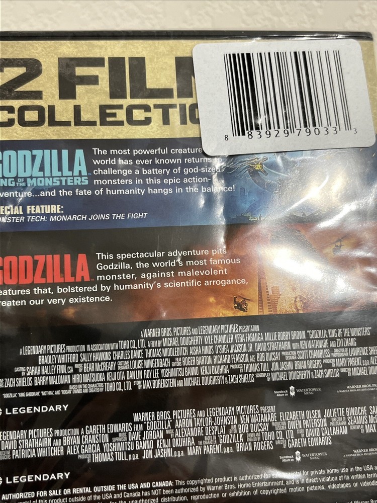 Godzilla & Godzilla: King Of The Monsters (DVD, 2019) 2-Film Collection Widescreen Region 1 Sealed in Original Packaging. SHOWS MINOR WEAR FROM STORAGE. See Pics! To prevent damage during shipment, items are SAFELY and SECURELY packaged using bubble wrap AND recycled cardboard! PLEASE NOTE: Domestic Shipping is free, via Media Mail, which can take 2 to 12 business days to arrive. USPS Priority shipping is available, at buyer’s expense, if you prefer faster delivery. Please see shipping details within listing, for options and pricing. Please read description and view pics thoroughly. Contact me if you have any questions. I am usually very quick to reply! Thanks for looking!