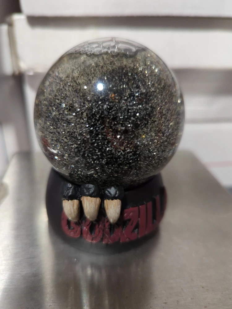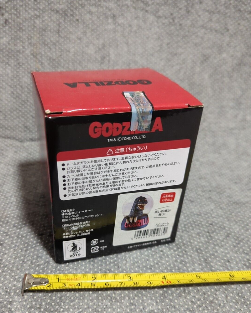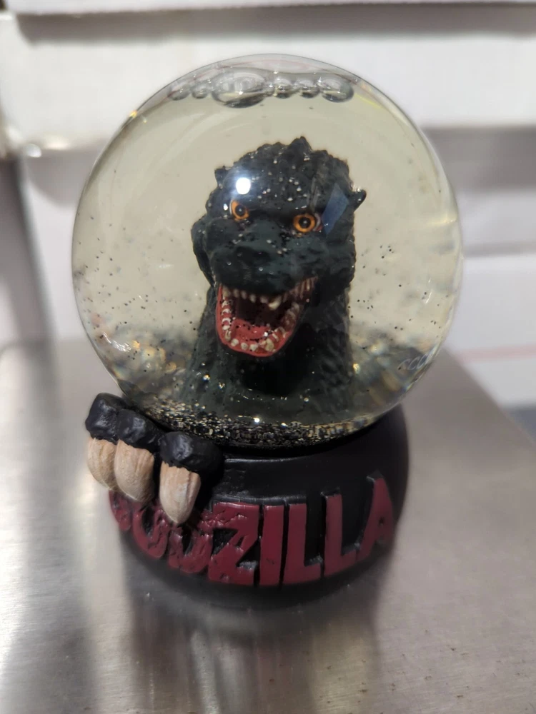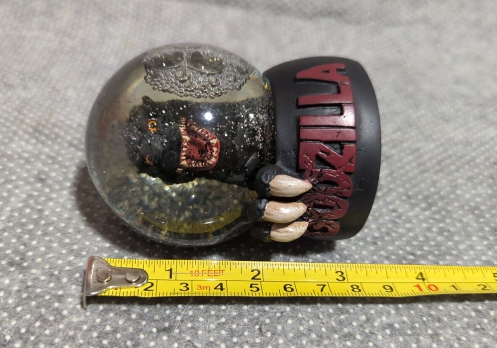 This Godzilla snow globe is such a cool collectible! The details on the figure are amazing, and the slight yellow tint gives it a vintage vibe. Even with a few air bubbles, it looks fantastic when shaken. Love that it comes with the original store bag—adds a nice touch of authenticity. The seller packed it securely, so it arrived in perfect condition. A must-have for any Godzilla fan!