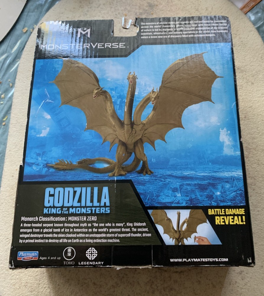 ‼️‼️‼️‼️‼️‼️‼️‼️‼️‼️‼️‼️‼️ low priced to be sold ‼️‼️‼️DAMAGED‼️‼️‼️‼️‼️‼️ Please be aware that the middle Dragon’s head is missing ! Hence low price ‼️‼️‼️‼️‼️‼️‼️‼️‼️‼️‼️‼️‼️ The product is a 6-inch action figure of King Ghidorah from the MonsterVerse Godzilla movie franchise, manufactured by Playmates Toys. As a character classified as a monster, King Ghidorah is a prominent figure in the Godzilla series, known for its multiple heads and destructive capabilities. This action figure allows fans to recreate epic battles or display their love for the MonsterVerse on their shelves.