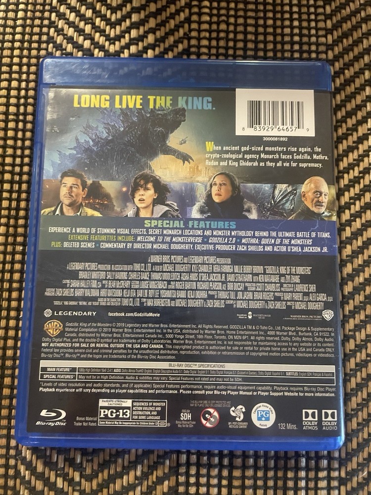 "Godzilla: King of the Monsters" is a 2019 science fiction horror film directed by Michael Dougherty and produced by Warner Home Video. This Blu-ray + DVD combo pack includes a behind-the-scenes featurette and has a PG-13 rating. The movie follows the iconic monster Godzilla as he battles other legendary creatures in a thrilling and action-packed storyline. With a runtime of 132 minutes, this film is a must-have for fans of the Godzilla franchise and those who enjoy science fiction and horror genres. It is available in multiple languages including French, Spanish, and English.