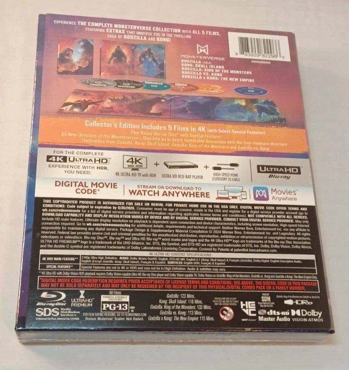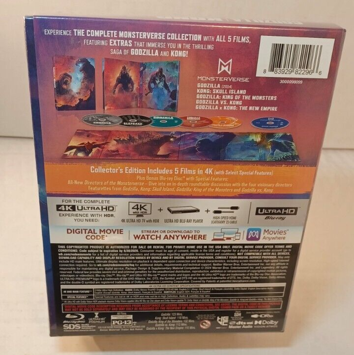*** Godzilla / Kong Monsterverse 5-Film Collection (4K UHD) NEW *** Brand NEW (Sealed) Digital Code Expiry date - June 30 2026 Shipping within One Business Day with USPS Tracking Number