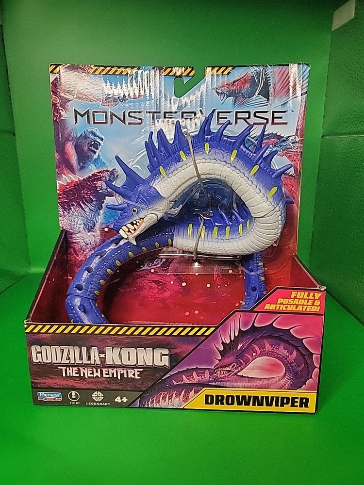 "Godzilla Kong The New Empire Drownviper" is a 1:12 scale action figure from the Godzilla franchise, manufactured by Playmates Toys in 2025. The multicolor plastic figure features the character Drownviper from the movie "Godzilla X Kong The New Empire" and is a part of the series. This toy is part of the Godzilla TV show and is suitable for ages 4 and up. It is the only item in the pack and is a great addition for fans of the Godzilla series and collectors of action figures.
