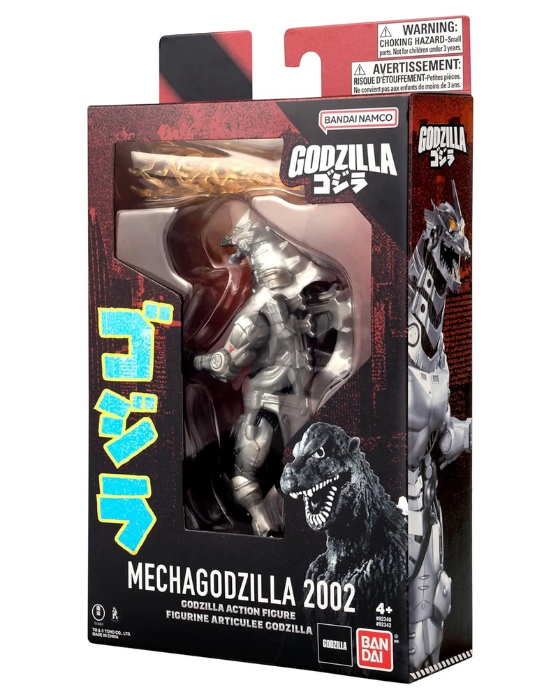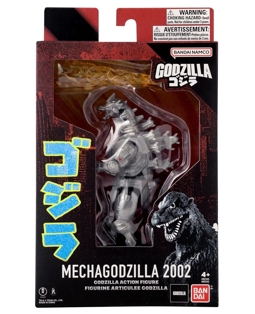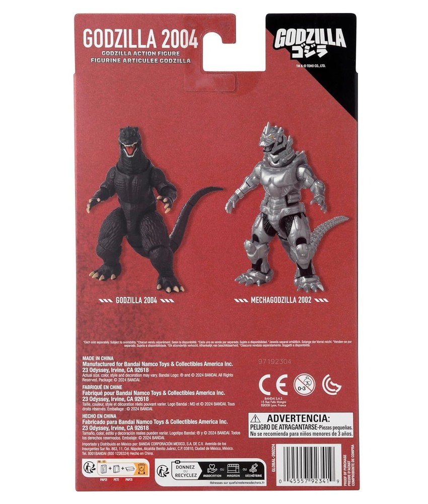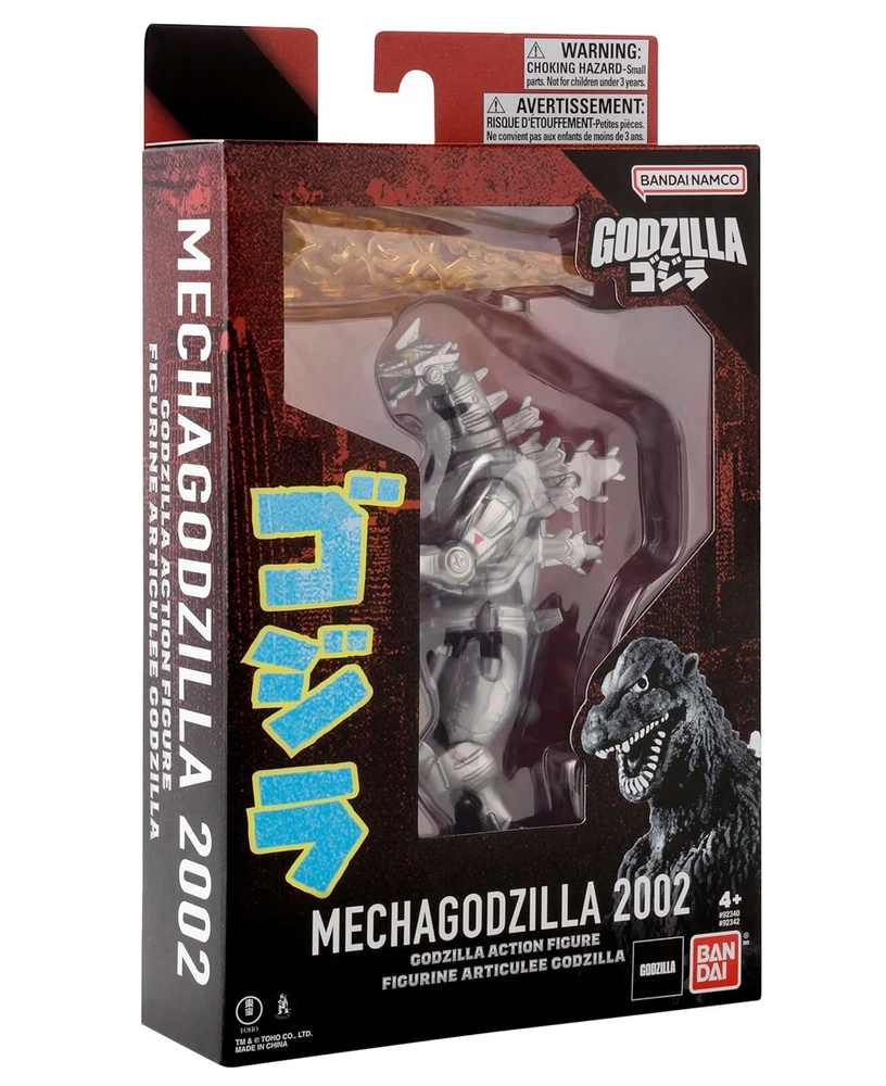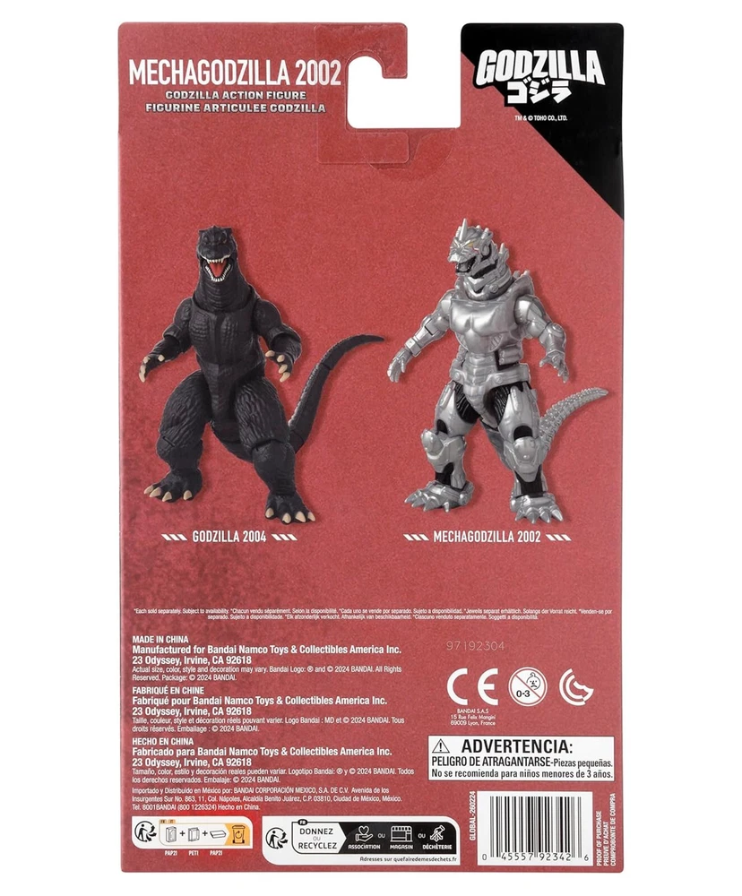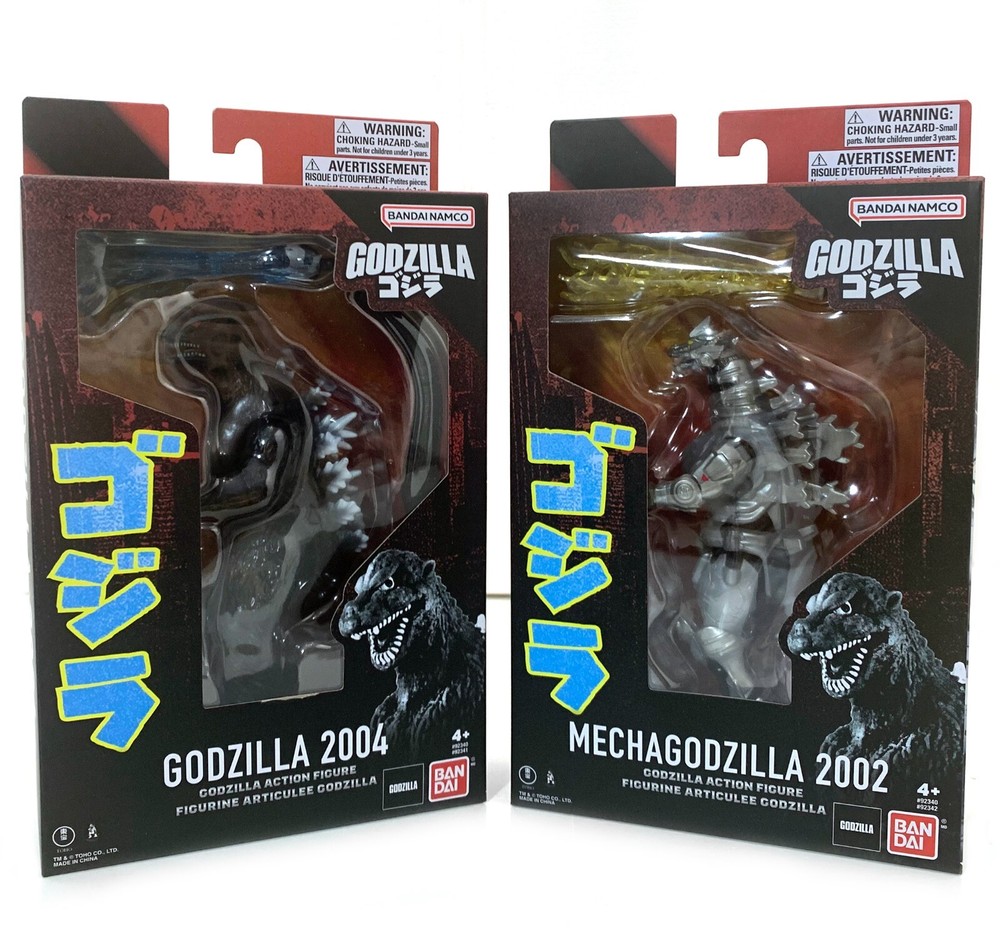 GODZILLA (2004) & MECHAGODZILLA (2002) 6-INCH ACTION FIGURES by BANDAI Namco Based on the Toho films Godzilla: Final Wars and Godzilla against Mechagodzilla , Godzilla (2004) and Mechagodzilla (2002) are the first releases in the new Bandai Namco Godzilla action figure line. Highly detailed figures stand approx. 6” tall and feature 17 points of articulation. Includes 2 Heat Ray breath effect pieces. BRAND NEW, factory sealed.