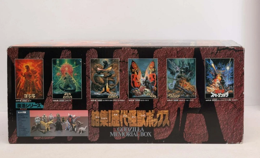 Selling your toy collection? Message us. Box Condition: Box has some wear. It has all the inner and outer flaps. The pictures will show the box's condition. Item Condition: Each figure is rated an average of 88 with light wear. Some may need cleaning. It is not broken. Our grading scale is 1 - 100, with mint flawless items a 100, near mint items a 95, excellent items a 90, and so on. Comes as shown. Accessory Condition: 100% complete. Joint Condition: Tight. Paperwork: Includes all paperwork shown. Godzilla Memorial Box 1995 Bandai Complete Set of 14 Action Figures W/Cards Godzilla Memorial Box 1995 Bandai Complete Set of 14 Action Figures W/Cards Click images to enlarge Description Selling your toy collection? Message us. Box Condition: Box has some wear. It has all the inner and outer flaps. The pictures will show the box's condition. Item Condition: Each figure is rated an average of 88 with light wear. Some may need cleaning. It is not broken. Our grading scale is 1 - 100, with mint flawless items a 100, near mint items a 95, excellent items a 90, and so on. Comes as shown. Accessory Condition: 100% complete. Joint Condition: Tight. Paperwork: Includes all paperwork shown. Pictures sell! Auctiva offers Free Image Hosting and Editing. 300+ Listing Templates! Auctiva gets you noticed! The complete eBay Selling Solution. Track Page Views With Auctiva's Counter