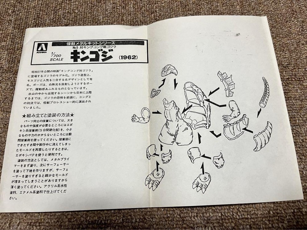 Description Thank you for visiting our auction!! Language: Japanese Condition: Used *Please check pictures well. If you have any questions please feel free to message me!! Shipping ①Payment It is compatible with Payoneer. Payment is due within 5 days of the auction end. We will ship the item within 3~5 business days after your payment clears. ②Shipping ☆Free shipping on purchases of 2 or more!! To USA Free shipping (Expedited shipping) We send product by EMS or Fedex with tracking (It will arrive 3~5 business days to USA) To International Free Shipping (Standard Shipping) We send product by E-Packet or EMS or FEDEX with tracking (It will arrive 3~5days or 1~4 weeks to World wide) *We think almost product will arrive soon. ※Caution ・Shipping is available from Monday to Friday. (Weekends are not available because post office is closed.) ・We can't send a product : US Protectorates, APO/FPO, Africa, Israel, Italy, Israel, Mexico, South America, PO Box (Due to postal problems) International Buyers - Please Note: ①Return When there is a different problem from the indicated contents, please tell us about it within 60days. We accept returns only if items did not match the description. Seller pays return shipping. We support any country. ②Import duties, taxes, and charges are not included in the item price or shipping cost. These charges are the buyer's responsibility. Please check with your country's customs office to determine what these additional costs will be prior to bidding or buying. Thank you for your understanding. [Model information] This figure is a 1/700 scale metal kit model based on the 1962 film "King Godzilla." It features an intricate design and is a valuable item for collectors and fans. 【accessories】 The figure includes all the parts and comes with the instructions you need to assemble it. The parts are very detailed and fun to assemble. [Collector's item] For special effects fans and Godzilla collectors, this figure commemorating the 1962 film is also the perfect display piece. - Model: King Kong (1962) - Scale: 1/700 Metal Kit - Accessories: Complete set of parts - Instructions: Assembly instructions included Some parts are detached from the runner. Please refer to the last photo. All parts are included. All items at the time of purchase are included. The outer box has some wear due to age. Please check the photo. The items in the photo are all that will be sent. Thank you for visiting.