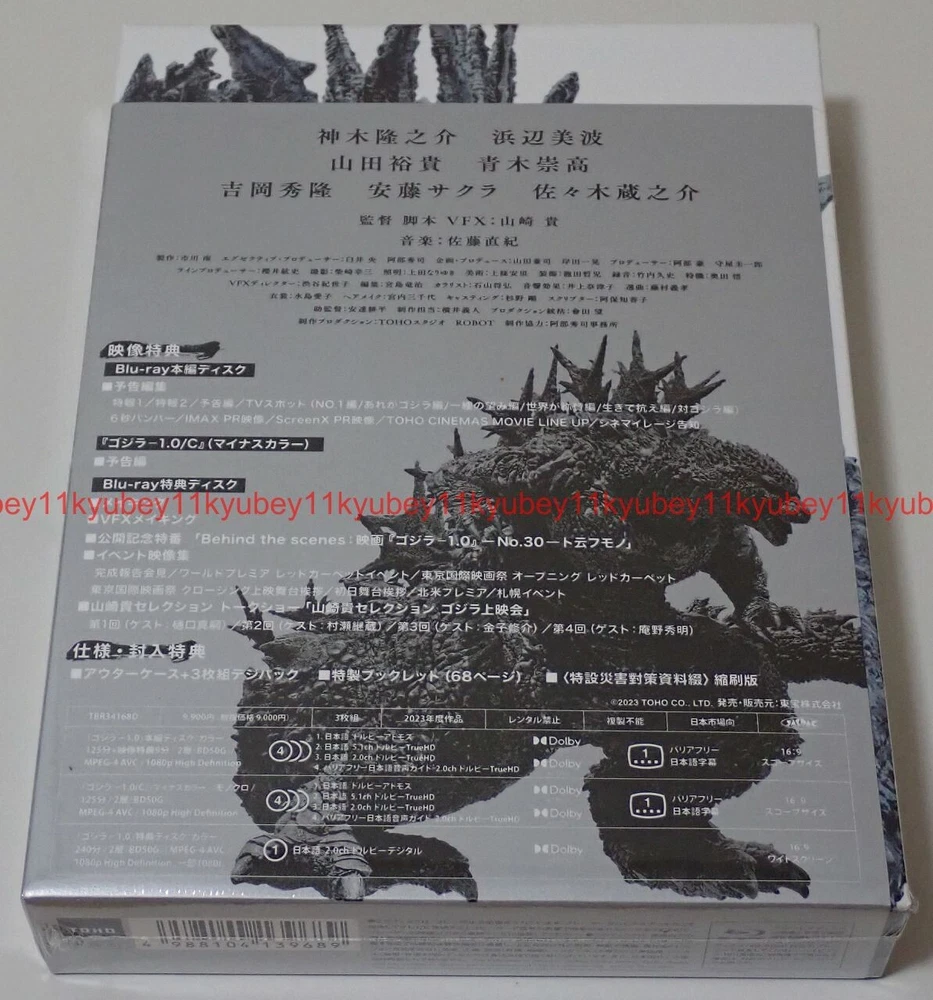 Description Condition : Brand New / Factory Sealed Release Date : May.1.2024 Region Code : Free Language : Japanese Subtitles : None Text : Japanese Disc : 3 (Blu-ray) Time : This item is First Limited Edition. This item is First Limited Edition. [First Limited Edition Benefits] ・ Blu-ray × 3 ・ Special booklet ・ Outer case ・ Special disaster countermeasure materials Reduced edition [Spec/Bonus] - 3-disc digipak + Outer case - Special booklet - <Special disaster countermeasure materials> Reduced edition Blu-ray release of "Godzilla Minus One (Godzilla -1.0)", a 2023 Japanese sci-fi action film directed, written, and with visual effects by Takashi Yamazaki. It is Toho's 33rd Godzilla film and stars Ryunosuke Kamiki. In the film, postwar Japan deals with the emergence of Godzilla... [Main story DISC① Blu-ray] Main story 125 minutes / Trailer editing / 2 layers (BD50G) / 1080p High Definition 16:9 Scope size Audio: (1) Japanese Dolby Atmos (2) Japanese 5.1ch Dolby TrueHD (3) Japanese 2.0ch Dolby TrueHD (4) Barrier-free Japanese audio guide 2.0ch Dolby TrueHD Subtitles: Barrier-free Japanese subtitles [“Godzilla-1.0/C” main story DISC② Blu-ray] Main story 125 minutes / "Godzilla-1.0/C" trailer / 2 layers (BD50G) / 1080p High Definition 16:9 Scope size Audio: (1) Japanese Dolby Atmos (2) Japanese 5.1ch Dolby TrueHD (3) Japanese 2.0ch Dolby TrueHD (4) Barrier-free Japanese audio guide 2.0ch Dolby TrueHD Subtitles: Barrier-free Japanese subtitles [Bonus DISC Blu-ray] Recording length: Undetermined / 2 layers (BD50G) / 16:9 / 1080p High Definition (some 1080i) Audio: Japanese 2.0ch Dolby Digital <Contents included> ■Making ■VFX making ■Release commemoration special program Behind the scenes -No.30-Tounfumono'' ■Event video collection Monday, September 4, 2023: Completion report press conference Wednesday, October 18, 2023: World Premiere Red Carpet Event Monday, October 23, 2023: Tokyo International Film Festival Opening Red Carpet Wednesday, November 1, 2023: Tokyo International Film Festival Closing Screening Stage Greetings November 3, 2023 (Friday/Holiday): Opening day stage greeting Wednesday, November 8, 2023 - Friday, November 10, 2023: North American Premiere Wednesday, November 29, 2023: Sapporo event ◇Takashi Yamazaki Selection Talk Show Friday, September 15, 2023: “Takashi Yamazaki Selection Godzilla Screening” 1st (Guest: Shinji Higuchi) Friday, September 29, 2023: “Takashi Yamazaki Selection Godzilla Screening” 2nd (Guest: Keizo Murase) Friday, October 13, 2023: “Takashi Yamazaki Selection Godzilla Screening” 3rd (Guest: Shusuke Kaneko) Friday, October 27, 2023: “Takashi Yamazaki Selection Godzilla Screening” 4th (Guest: Hideaki Anno) Japan after the war. From nothing to negative. <Story> Live and resist. Godzilla suddenly appears in Japan, which has become a scorched earth. Is there a way for the nameless people left behind to survive and fight back? Shipping SHIPPED EXPRESS (EMS) from JAPAN Shipped : World Wide Courier : Japan Post EMS Online Tracking Number : PROVIDED Insurance : PROVIDED Estimated Delivery : 1 week to 2 weeks We will ship this product within 5 business days after the payment is received. Payment Please pay within 5 days after auction is finished. About Us Our Products are 100% Authentic. I promise to pack up the product very carefully. Although slight costs start for that purpose, I do some shopping to you in comfort, and want you to enjoy the product. If you have any question,please contact me. Happy Bidding!!