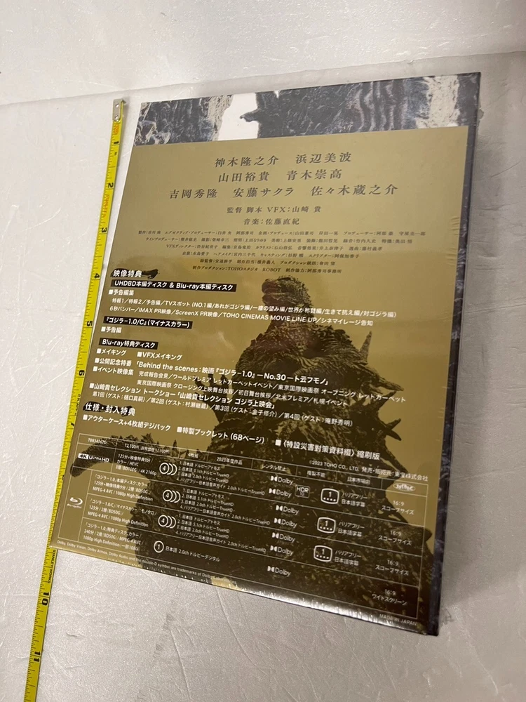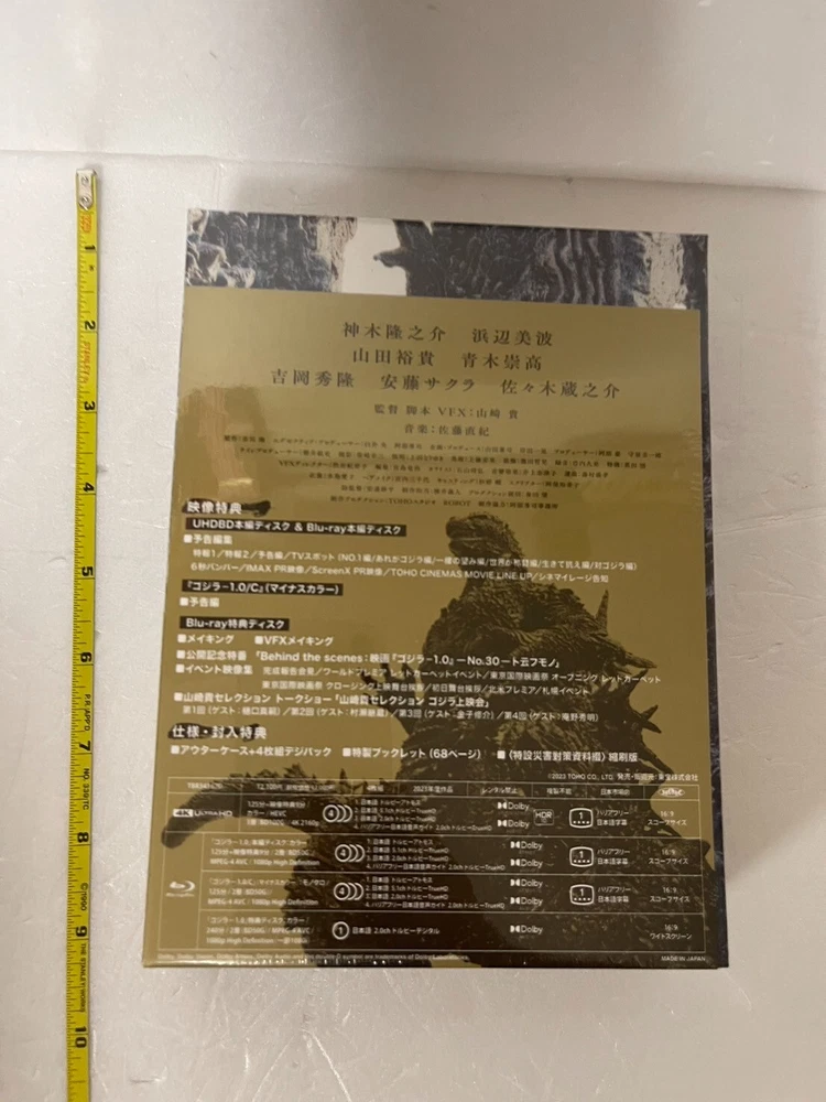 ●Item Title Godzilla Minus One -1.0 Deluxe Edition 4K Ultra HD+3 Blu-ray+2 Booklet+Case Please note that the audio and subtitles for this Blu-ray are only in Japanese. Blu-rays with English language support are not sold in Japan. ●Description Condition:New <Story> Live and resist. Godzilla suddenly appears in Japan, which has become a scorched earth. Is there a way for the nameless people left behind to survive and fight back? In this work "Godzilla-1.0" which is a work commemorating Godzilla's 70th anniversary, Takashi Yamazaki is the director, scriptwriter, and VFX. A symbol of despair is now revived in Reiwa. [Main story DISC① 4K Ultra HD Blu-ray] Main story 125 minutes / 3 layers (100G) / 4K 2160p 16:9 Scope size / Dolby Vision Audio: (1) Japanese Dolby Atmos (2) Japanese 5.1ch Dolby TrueHD (3) Japanese 2.0ch Dolby TrueHD (4) Barrier-free Japanese audio guide 2.0ch Dolby TrueHD Subtitles: Barrier-free Japanese subtitles [Main story DISC② Blu-ray] Main story 125 minutes / Trailer editing / 2 layers (BD50G) / 1080p High Definition 16:9 Scope size Audio: (1) Japanese Dolby Atmos (2) Japanese 5.1ch Dolby TrueHD (3) Japanese 2.0ch Dolby TrueHD (4) Barrier-free Japanese audio guide 2.0ch Dolby TrueHD Subtitles: Barrier-free Japanese subtitles [“Godzilla-1.0/C” main story DISC③ Blu-ray] Main story 125 minutes / "Godzilla-1.0/C" trailer / 2 layers (BD50G) / 1080p High Definition 16:9 Scope size Audio: (1) Japanese Dolby Atmos (2) Japanese 5.1ch Dolby TrueHD (3) Japanese 2.0ch Dolby TrueHD (4) Barrier-free Japanese audio guide 2.0ch Dolby TrueHD Subtitles: Barrier-free Japanese subtitles [Bonus DISC Blu-ray] Recording length: undetermined / 2 layers (BD50G) / 16:9 / 1080p High Definition (some 1080i) Audio: Japanese 2.0ch Dolby Digital <Contents (Bonus DISC)> ■Making ■VFX making ■Release commemoration special program Behind the scenes -No.30-Tounfumono'' ■Event video collection <Preview editing (main disc ②)> ■Special news 1 and 2 ■Trailer ■TV spot NO.1 edition/That's Godzilla edition/A glimmer of hope/World praise edition/Live and resist edition/Anti-Godzilla edition ■6 seconds bumper ■IMAX PR video ■ScreenX PR video ■TOHO CINEMAS MOVIE LINE UP ■Cinema erasure announcement <Specifications/Inclusions> ■4-disc digipak + outer case specification ■Special booklet ■〈Special Disaster Countermeasures Materials〉Reduced version ●Shipping Expedited shipping (FedEx,DHL,Japan Post) We usually ship out your order within 5-10 working days after receiving your payment. The package will arrive about 1-3 week after shipment. ●International Buyers - Please Note: Import duties, taxes, and charges are not included in the item price or shipping cost. These charges are the buyer's responsibility. Please check with your country's customs office to determine what these additional costs will be prior to bidding or buying. If the cancellation is due to the buyer, we will charge a PayPal fee. If there is a remote charge for your address, we will charge you for additional shipping. Thank you for your understanding.