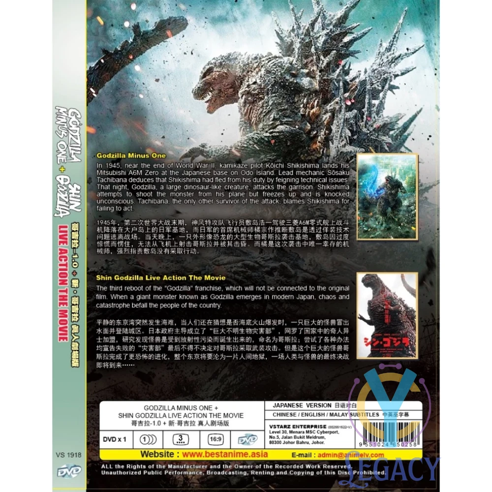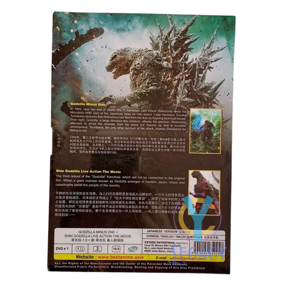 Godzilla Minus One (2023) + Shin Godzilla (2016) Live Action Film DVD English Subtitle + Free Gift Random Keychain DVD Details: Title: Godzilla Minus One + Shin Godzilla No Of Disc : DVD x 1 Disc Version : Japanese Subtitles : English / Chinese Format : DVD / NTSC & All Region Code (16:9) Genres : Action, Tokusatsu, Horror, Sci-Fi Condition : Original NEW with DVD BOX SET PACKAGING!! Publisher : Malaysia Original Hologram Sticker Product Description: Godzilla Minus One [2023] Starring: Ryunosuke Kamiki, Minami Hamabe, Yuki Yamada, Munetaka Aoki, Hidetaka Yoshioka, Sakura Ando, Kuranosuke Sasaki Running time: 125 minutes Shin Godzilla [2016] Starring: Hiroki Hasegawa, Yutaka Takenouchi, Satomi Ishihara Running time: 120 minutes Synopsis of the Series: Godzilla Minus One Post-war Japan is at its lowest point when a new crisis emerges in the form of a giant monster baptized in the horrific power of the atomic bomb. Shin Godzilla All of the sudden, a giant creature immediately appears, destroying town after town plunged into chaos with its landing reaching the capital. This mysterious giant monster is named ""Godzilla"". ** Get a Free Gift for every puchase which 1 random Anime Keychains Customer Satisfaction Guaranteed: We pride ourselves on providing top-notch customer service. If you have any questions or concerns, feel free to reach out, and we will be happy to assist you. Your satisfaction is our priority. Payment Currently, we accept payment through eBay-managed payments. Shipping We will ship your item within 1-4 working days when payment received. We take great pride in our swift dispatch times, ensuring that orders are shipped within 1 to 4 working days from Monday to Friday. It's important to note that this time frame excludes public holidays. Economy Shipping from Abroad with Tracking. Normally it takes 11-35 working days for delivery on all international order. Sometimes it may take up to 30 working days to arrive. If your item does not arrive within the time frame, please contact us via eBay message. FedEx / DHL Express Shipping from Aboard with Tracking. Normally it takes 5-10 working days for delivery on all international order. Sometimes it may take up to 14 working days to arrive. If your item does not arrive within the time frame, please contact us via eBay message. Proof of shipment will be kept for future reference. Your item will be packed and layered with bubble wrap to reduce damages during shipping and delivery. To ensure a smooth delivery/transaction, please make sure your shipping address is verified and correct. We are not responsible for invalid addresses. Worldwide shipping available. Additional charges may be applied or delivery period may be longer if being shipped to certain remote areas. Returns If you have any problem with the order, do contact us via eBay message. We are glad to assist you and solve the problem as soon as possible. Items can be returned within 30 days with good conditions. Customs International shipments may be subjected to additional custom fees and duties. We DO NOT pre-bill any import duties, customs fees or tariffs imposed by various government on the product. We DO NOT responsible for your country's customs. Please check with your country's customs before you buy. All the customs fee & taxes will be on the buyer's responsibility. Also allow some time for your country's customs clearance time, because the delays usually come from Customs. Seller are not responsible for item lost, but seller always keeps the proof of delivery. Contact Us If you have any questions or concerns, you can reach us through eBay messages. We appreciate your business and if you are satisfied with our service, kindly provide positive feedback and rate the details of the transaction. Our goal is to make sure you are a satisfied buyer so kindly give us the chance to do so. Should anything goes wrong with your order, kindly contact us before leaving any negative or neutral feedback.