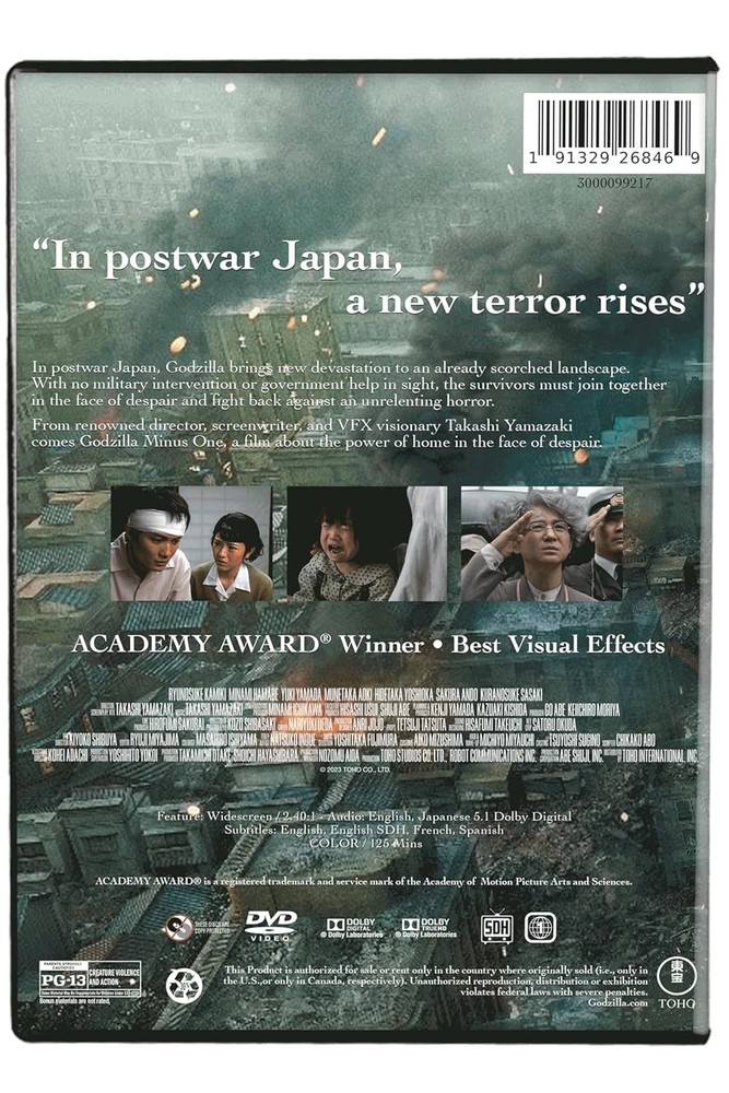 Further Details Title: Godzilla Minus One (4K Ultra HD + Blu-ray) Format: 4K UHD Blu-ray Condition: New Number Of Discs: 2 Release Date: 11/19/2024 Actors: Minami Hamabe, Munetaka Aoki, Ryunosuke Kamiki, Sakura Ando, Takashi Yamazaki Director: Takashi Yamazaki Audio Language: Japanese Runtime: 2 hours and 4 minutes Studio: Studio Distribution Services Subtitle Language: English Certificate: MPAA PG-13 Description: In postwar Japan, a new terror rises; Godzilla. Will the devastated people be able to survive... let alone fight back? Starring: Ryunosuke Kamiki, Minami Hamabe, Yuki Yamada DVDs ARE REGION 1 UNLESS OTHERWISE STATED Missing Information? Please contact us if any details are missing and where possible we will add the information to our listing.