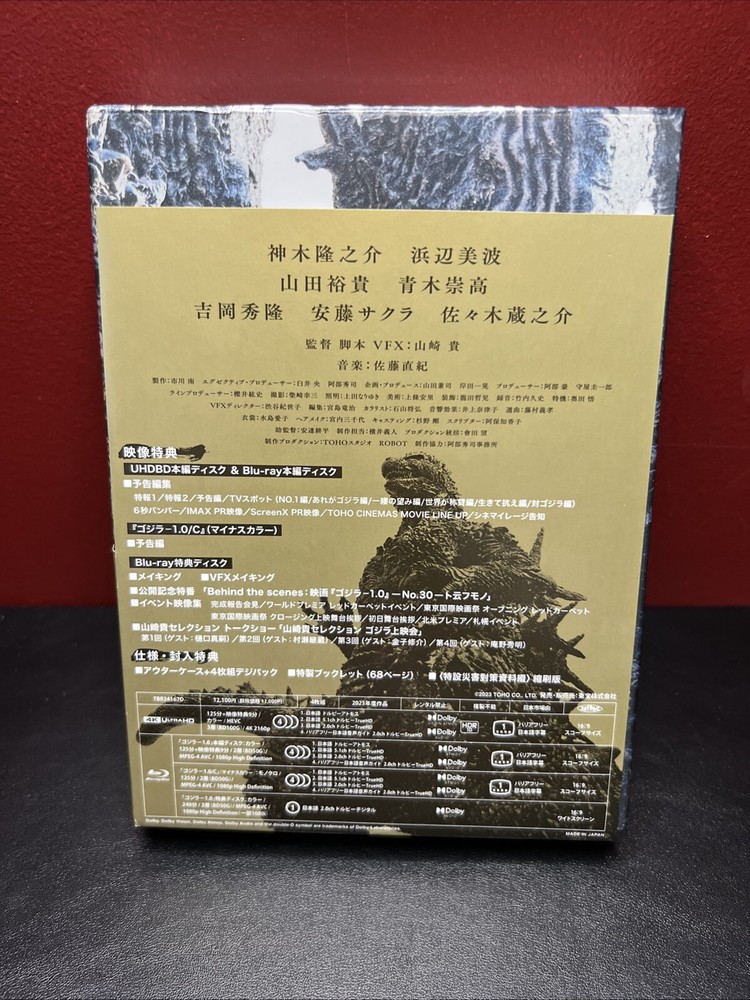 GUARANTEE YOURSELF A COPY OF THIS ITEM BEFORE IT SELLS OUT! Video Codec: HEVC / H.265 (62.97 Mbps) Resolution: Native 4K (2160p) HDR: Dolby Vision, HDR10 Aspect ratio: 2.39:1 Original aspect ratio: 2.39:1 Audio Japanese: Dolby Atmos Japanese: Dolby TrueHD 7.1 (48kHz, 24-bit) Japanese: Dolby TrueHD 5.1 (48kHz, 24-bit) Japanese: Dolby TrueHD 2.0 (48kHz, 24-bit) Audio descriptive Subtitles Japanese Discs 4K Ultra HD Blu-ray Disc Four-disc set (1 BD-100, 3 BD-50) Packaging Slipbox DigiPack, Embossed print, Inner print Booklet Leaflet/foldout Playback 4K Blu-ray: Region free 2K Blu-ray: Region A, B WELCOME TO DARK WOODS MEDIA Please follow us as a seller and see our other products in our store, we carry thousands of titles and we specialize in Collector Slipcovers. We do not sell items with any major damage to the slipcover although there may be slight imperfections and marked as near mint as they are extremely delicate unless the title states MINT . Please note that I use a ring light to look for imperfections. If you are looking for mint slipcovers please check my other listing or contact me first and I will do my best to accommodate . All items are thoroughly inspected in a two step process and described in as much detail as possible. All items come with premium shipping complete with bubble wrap and premium boxes for safe shipment. We do not sell anything with loose discs and can't be held responsible for discs coming loose during shipment. MINT slipcovers will come with hard protector sleeves . We strive for the best customer service and your feedback is important to us, if you have any questions or issues please contact us first before leaving negative feedback, we will take care of the issue. Please inspect the item before opening as we DO NOT accept open items back for return. Handle time is inside 1 day for prompt payment. Payment is due within 4 days of purchase date. We have 100% positive feedback and you won't be disappointed. THANK YOU FOR LOOKING AND YOUR BUSINESS