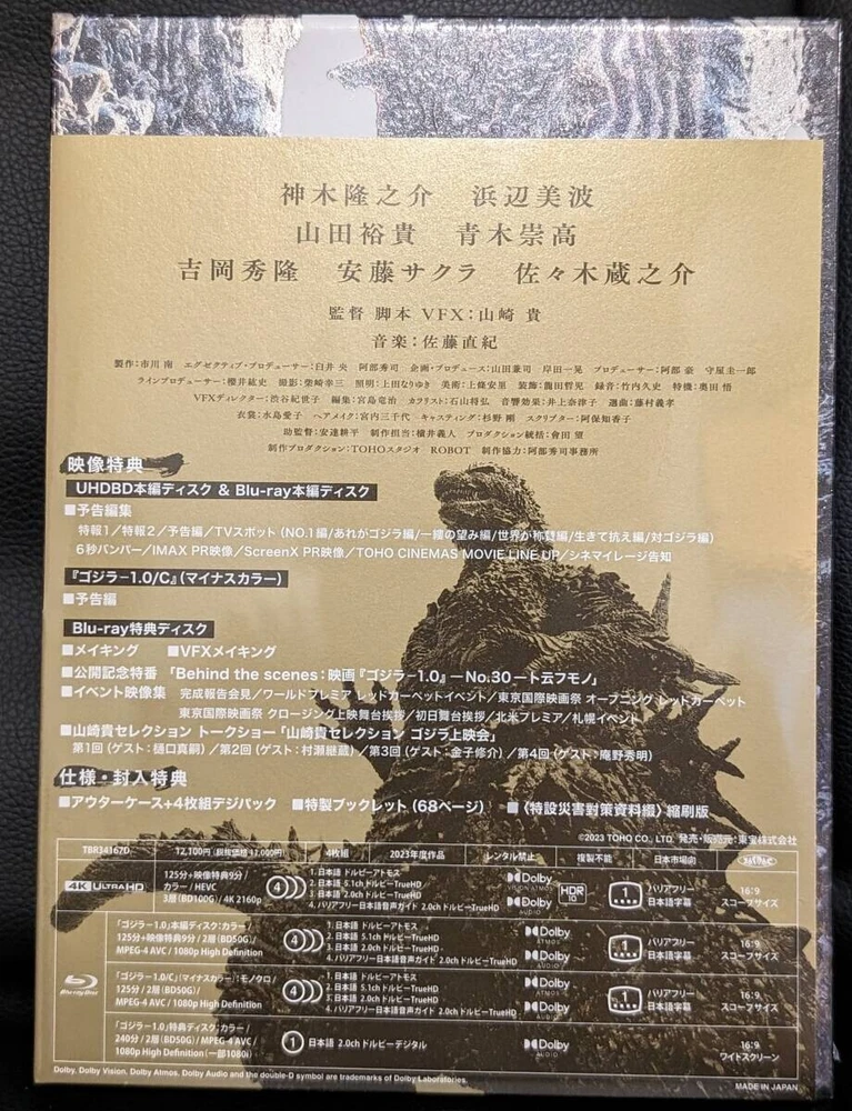 Thank you for visiting Godzilla Minus One Deluxe Edition 4K Ultra HD Blu-ray From Japan New Description Condition NEW Returns Returns are accepted ONLY if the item was not the item described. Shipping Expedited Shipping FedEx or DHL Economy Shipping Japan Post We always send the item with a tracking number. So please place an order without any concern on delivery. You can always track the delivery status. Shipping is only available to the address registered in eBay. If you want us to send another address, please change your address on eBay and then place an order. Shipping is available from Monday to Friday. Weekends are not available because freight (shipping) companies are closed. We do not mark merchandise values below value or mark items as ?gifts? ? Japan, US and International government regulations prohibit such behavior. About Importer's Obligation Import duties, taxes, and charges are not included in the item price or shipping cost. These charges are the buyer's responsibility. Please check with your country's customs office to determine what these additional costs will be prior to bidding or buying. Thank you for your understanding. A