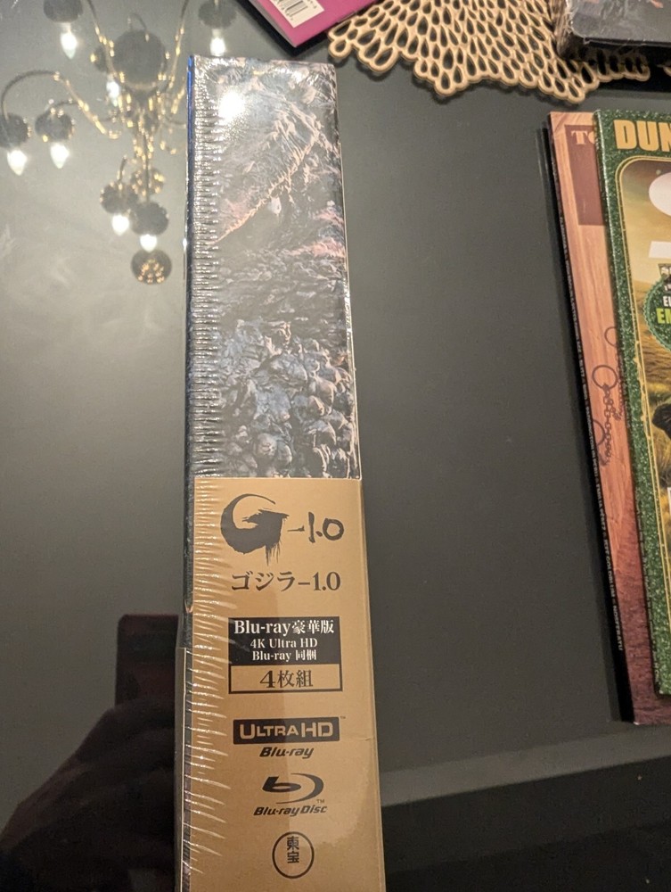 Godzilla Minus One Deluxe Edition 4K Ultra HD+3 Blu-ray+2 Booklet+Case Japanese. This limited edition set includes a 4K UHD Blu-ray disc, three Blu-ray discs, a special booklet, and an outer case. The set features the first season of the Japanese movie "Godzilla Minus One", directed by Yamazaki Takashi and starring Kamiki Ryunosuke, Hamabe Minami, and Ando Sakura. The set is region-free and includes Japanese language options. The set is brand new and still in its original packaging.