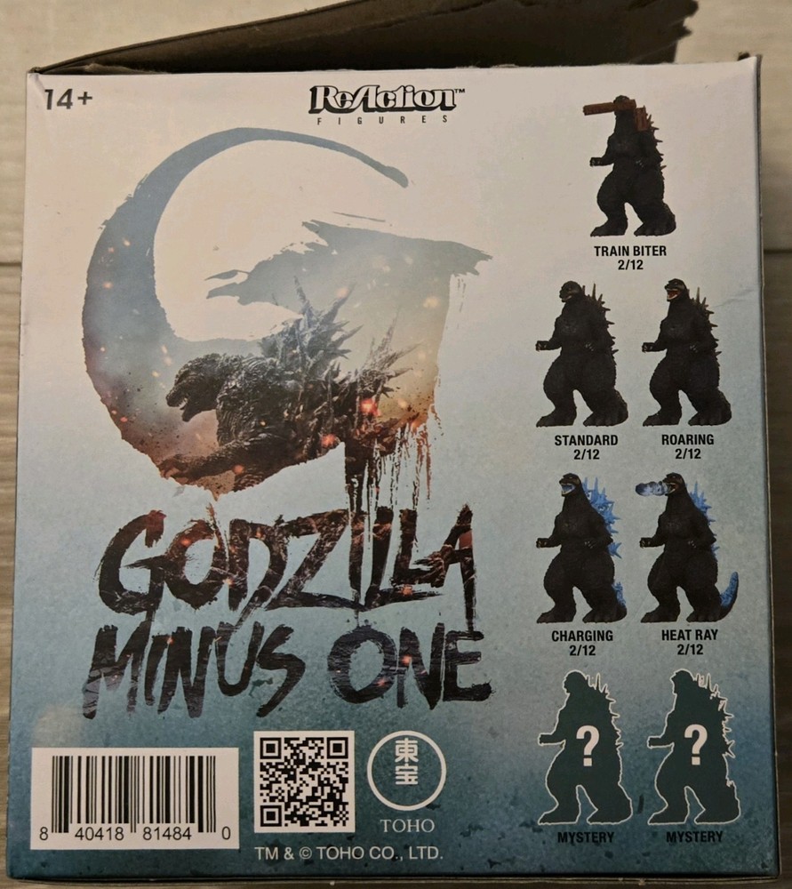 PLEASE NOTE BOXES WERE OPENED AND CHECKED TO SEE WHO WAS INSIDE THEN PACKED AWAY FOR SALE The Godzilla Minus One "Heat Ray" ReAction Super7 Action Mystery Blind Box is a highly collectible action figure featuring the character Godzila from the Godzilla Minus One series. Made of plastic and vinyl materials, this figure is part of the Godzilla franchise and TV show, appealing to fans of the iconic monster. With a unique design and various colors, this blind box offers a surprise element for collectors looking to add a special piece to their collection.