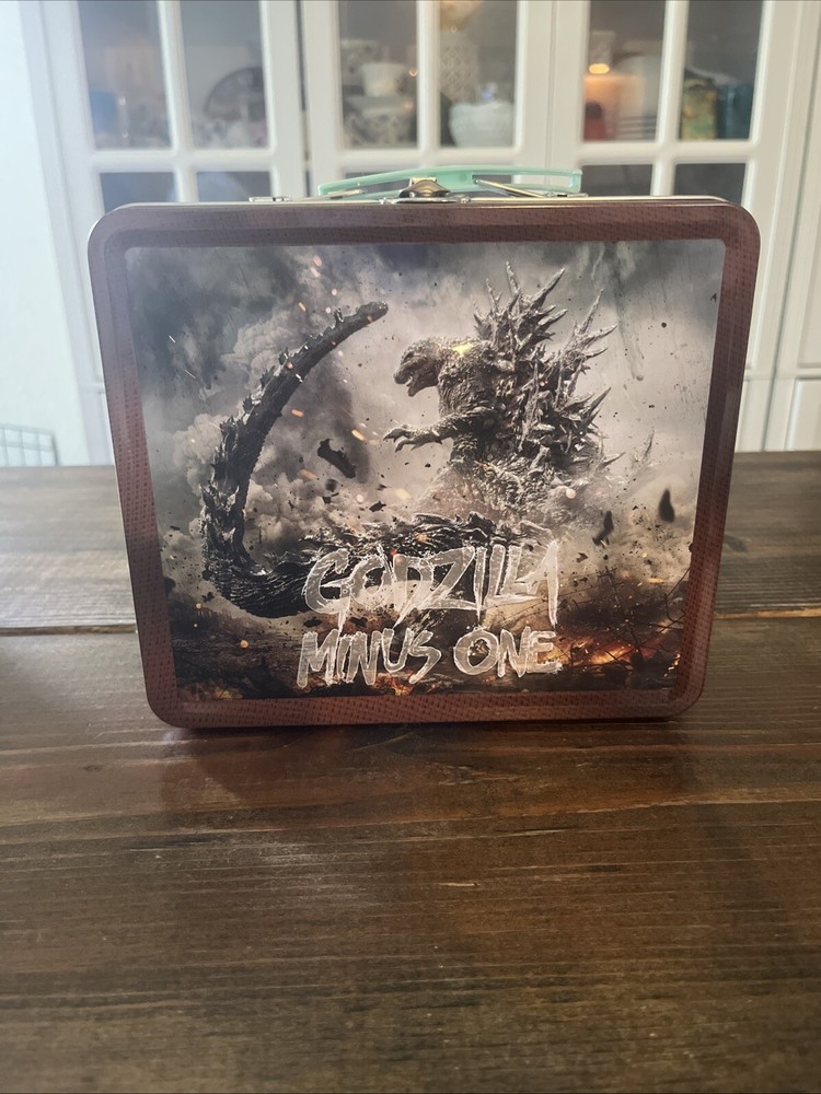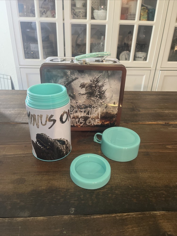 The product is a Godzilla Minus One Tin Titans Lunch Box with Thermos, featuring a character from the US Comics series Previews. This collectible item weighs 100 grams and is branded as "OTHER PUBLISHERS." The lunch box likely showcases iconic images of Godzilla and the Titans superhero team, making it a must-have for fans of the comics and graphic novels genre.