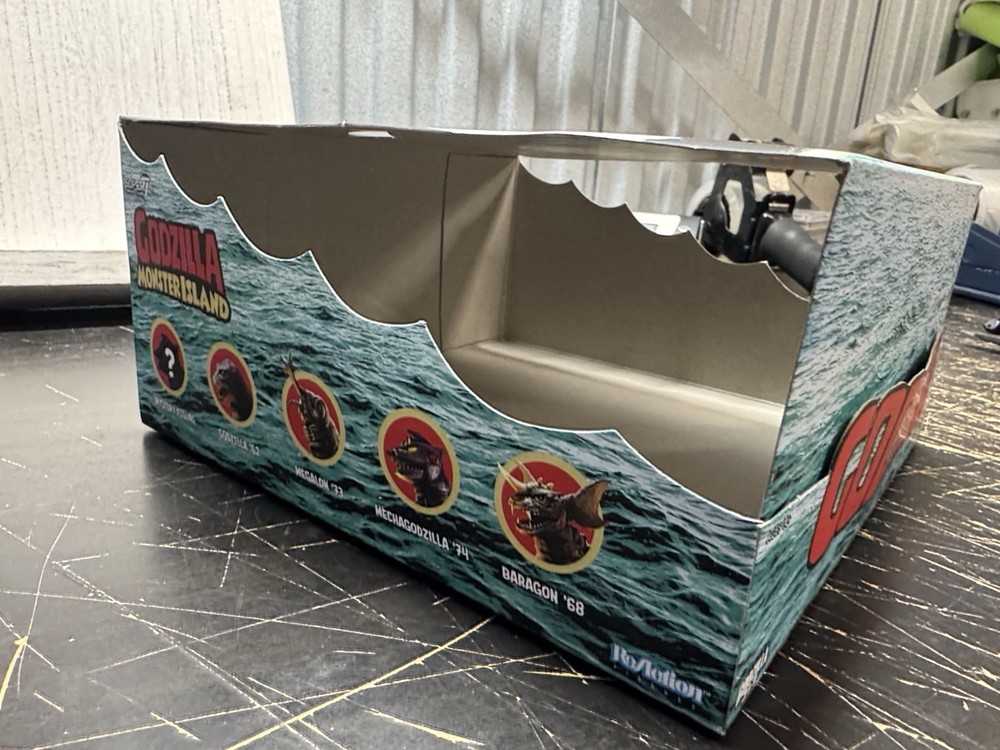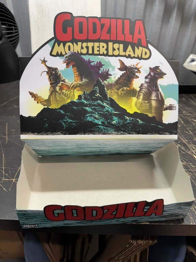 This empty Godzilla Monster Island display box is perfect for collectors who want a unique display piece! It has some wear and scratches, giving it a cool vintage vibe, but the design still looks awesome. Great for showcasing other figures or just as a nostalgic addition to your collection. Exactly as pictured—no surprises!