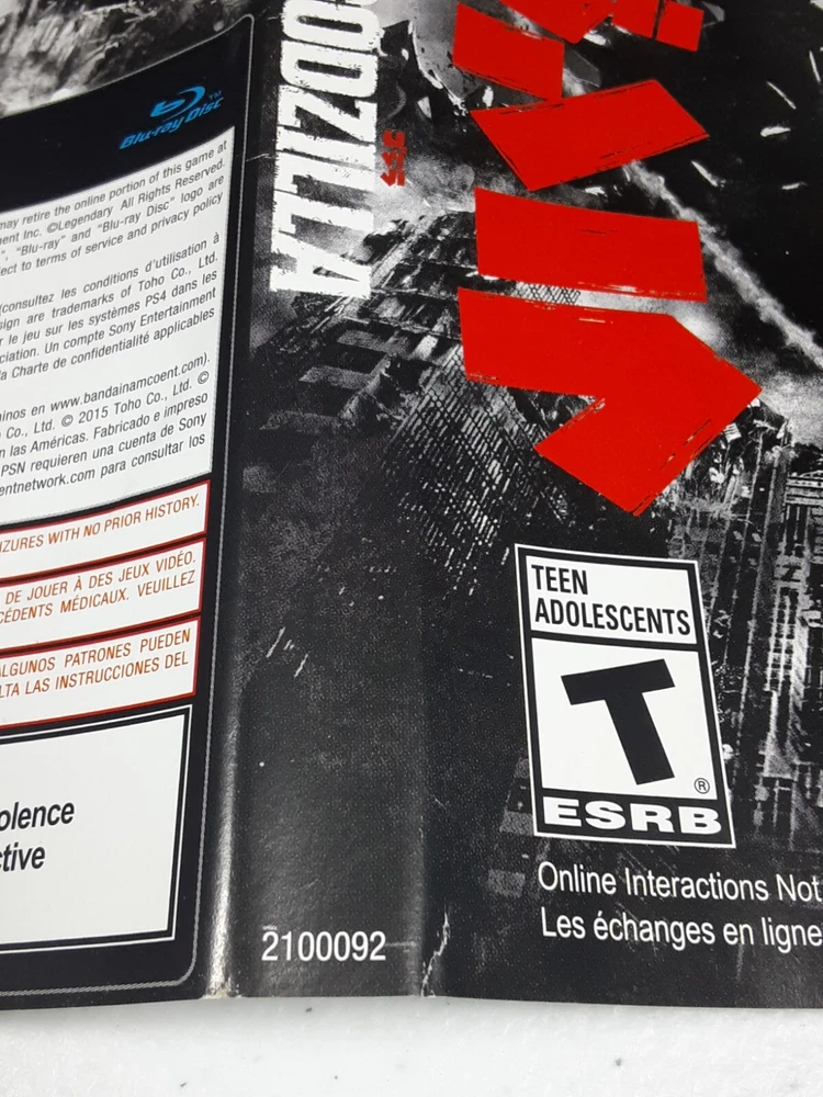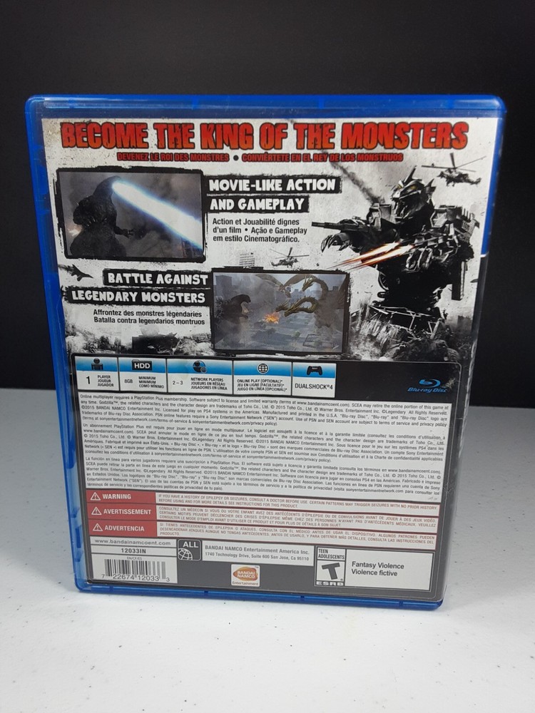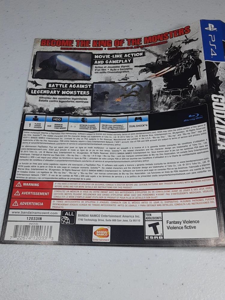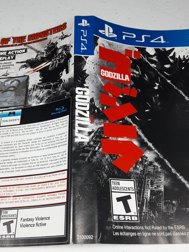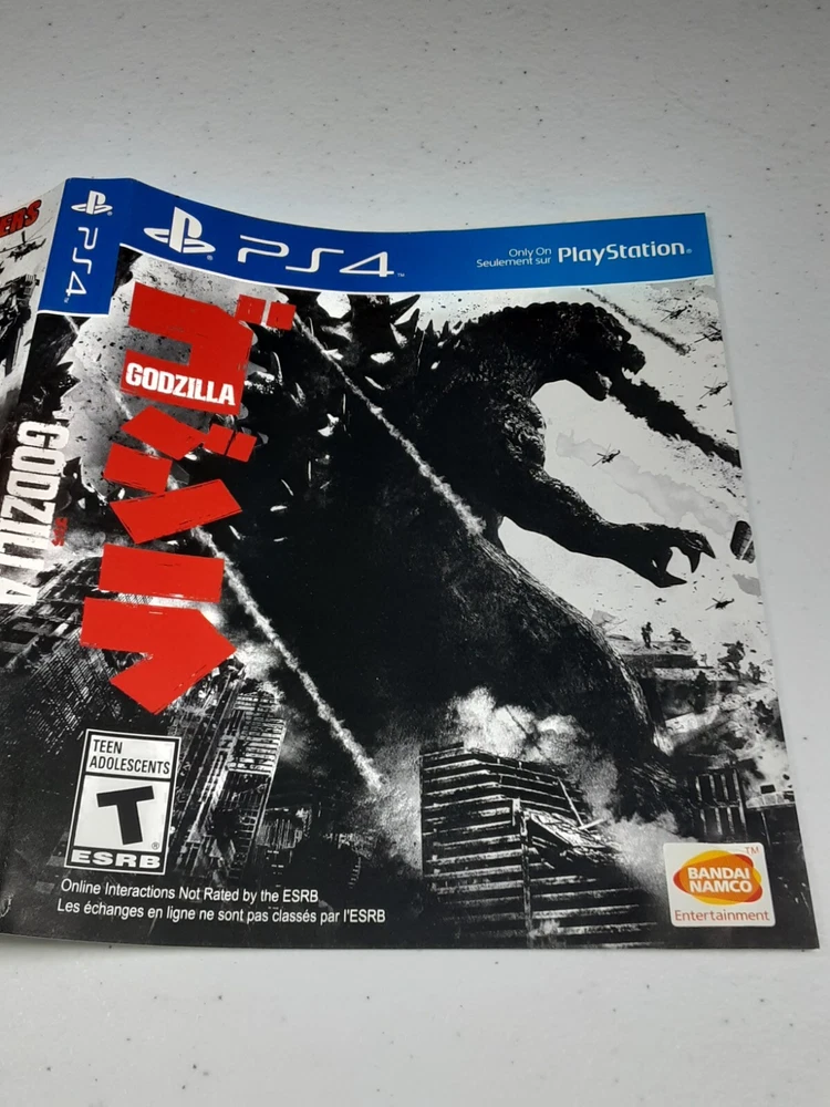 Up for sale is Godzilla PlayStation 4 Case & Cover Art Only! Cover Art Has Water Damage On Back. The case and cover art are in good used condition with some flaws on the cover art. There are a few stress marks on the spine of the cover art and on the back it has some water damage and some staining on the the inside white part. The water damage isn't to bad. The cover art overall is in decent condition. See pics for condition. If you have any questions just send me a message. Thanks