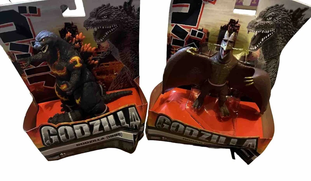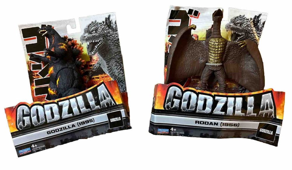 This is a fantastic opportunity to add two rare and highly collectible Godzilla figures to your collection. The lot includes Rodan from 1956 and Godzilla from 1995, both brand new and never opened. Although the boxes show some signs of wear and tear, the contents are in pristine condition. These figures were produced by Playmates Toys in 2021 and are a must-have for any fan of the Godzilla franchise. The figures are recommended for ages 4 and up and have not been modified in any way. Don't miss out on this chance to add these iconic monsters to your collection! THIS ITEM IS NEW WITH A DAMAGED BOX! Item sold as is !