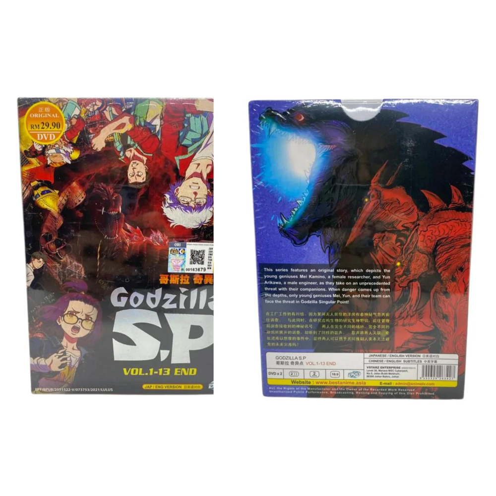 GODZILLA S.P DVD ENGLISH DUBBED VOL 1-13 End No of Disc: 2 Disc Version: Japanese / English Subtitles: Chinese / English Format: DVD / NTSC & All Region Code Story: This series features an original story, which depicts the young geniuses Mei Kamino, a female researcher, and Yun Arikawa, a male engineer, as they take on an unprecedented threat with their companions. When danger comes up from the depths, only young geniuses Mei, Yun, and their team can face the threat in Godzilla Singular Point! Payment : We accept payment via ebay manage payment ( payoneer) Shipping : We use economy standard shipping USPS First Class. Our handling time is 3 business days. Estimated time delivery is 2-5 business days.You item will be wrapped and will be given valid tracking number. Return : Returns are accepted within 30 days. Items must be in their original condition, and the buyer is responsible for return shipping costs.
