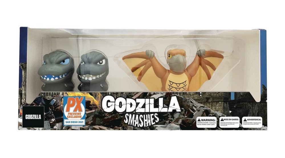 Godzilla Smashies Stress Doll 3-Pack - SDCC 2021 Previews Exclusive Godzilla Smashies Stress Doll 3-Pack - SDCC 2021 Previews Exclusive Godzilla Smashies Stress Doll 3-Pack - SDCC 2021 Previews Exclusive From Surreal Entertainment. This special San Diego Exclusive collector display window box includes three slo-rise foam SMASHIES! Collect Atomic Godzilla winding up for a blast of his radioactive fire breath, Black and White Godzilla as seen in the original 1954 Gojira and 1955's Godzilla Raids Again , and an exclusive SMASHIE of Rodan , with an impressive 7 1/2" wingspan. Rodan is exclusive to this limited edition set, and not available in any other assortment! Each character is 4" tall and made of slo-rise "squishy" foam, so you can SMASH these kaiju and watch as they slowly regenerate back to their original form! Limited to 2000 Pieces.