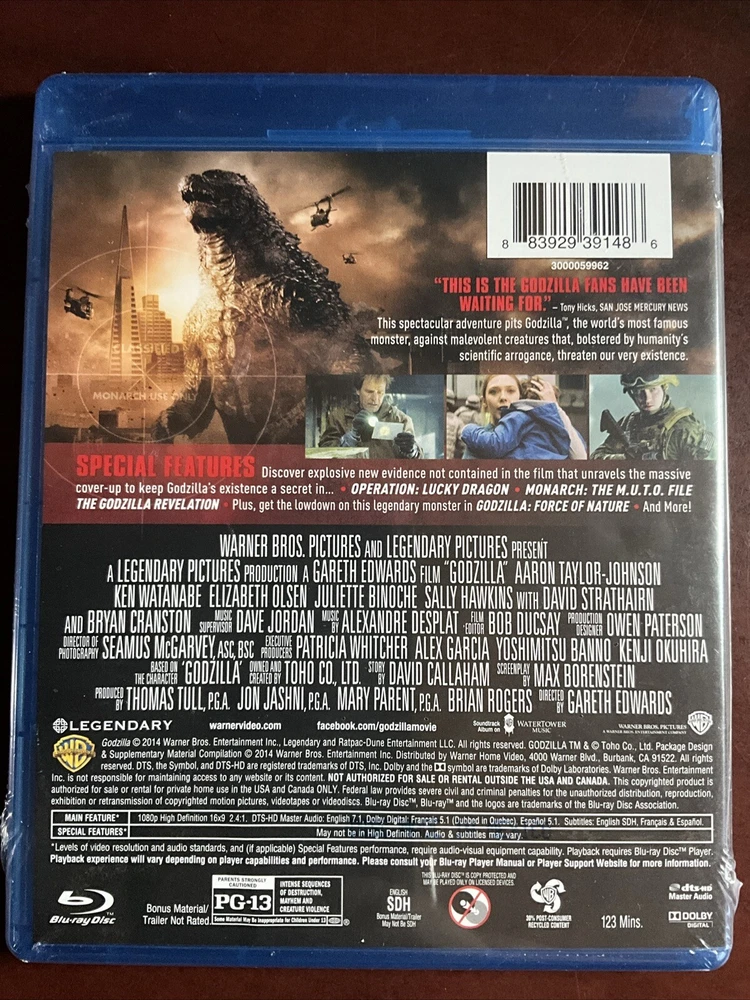 This Godzilla Standard Definition Widescreen (Blu-ray + DVD) is a must-have for any movie enthusiast. The Blu-ray and DVD combo pack offers the best of both worlds, allowing you to enjoy the movie in high definition and on the go. The format is DVD, and the movie/TV title is Godzilla Standard Definition Widescreen. The features of this combo pack include widescreen format, making the movie experience even more immersive. It falls under the categories of Movies & TV and DVDs & Blu-ray Discs. Get ready to be transported to the world of Godzilla with this amazing combo pack. You are bidding on a new Blu Ray.