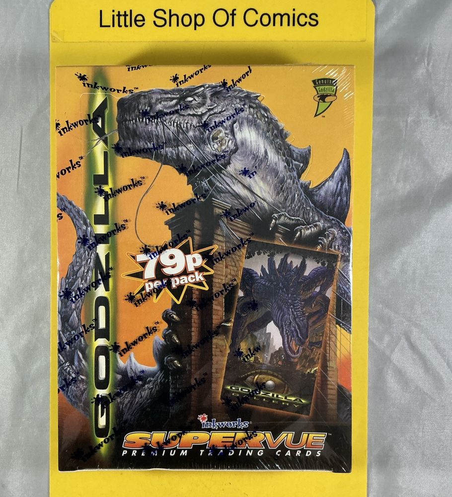This product is factory Sealed Godzilla Supervue Premium Trading Cards Box 1998 Inkworks Factory Sealed 5 Cards per Pack. 36 Packs per box Local pick-up is on Thursdays from 11 am to 4 pm. Thank you for looking at our listing, this is how we make a living if you have any issues with your item(s) please get in touch with us first so we can help you with resolve that issue. Again, thank you for checking us out.