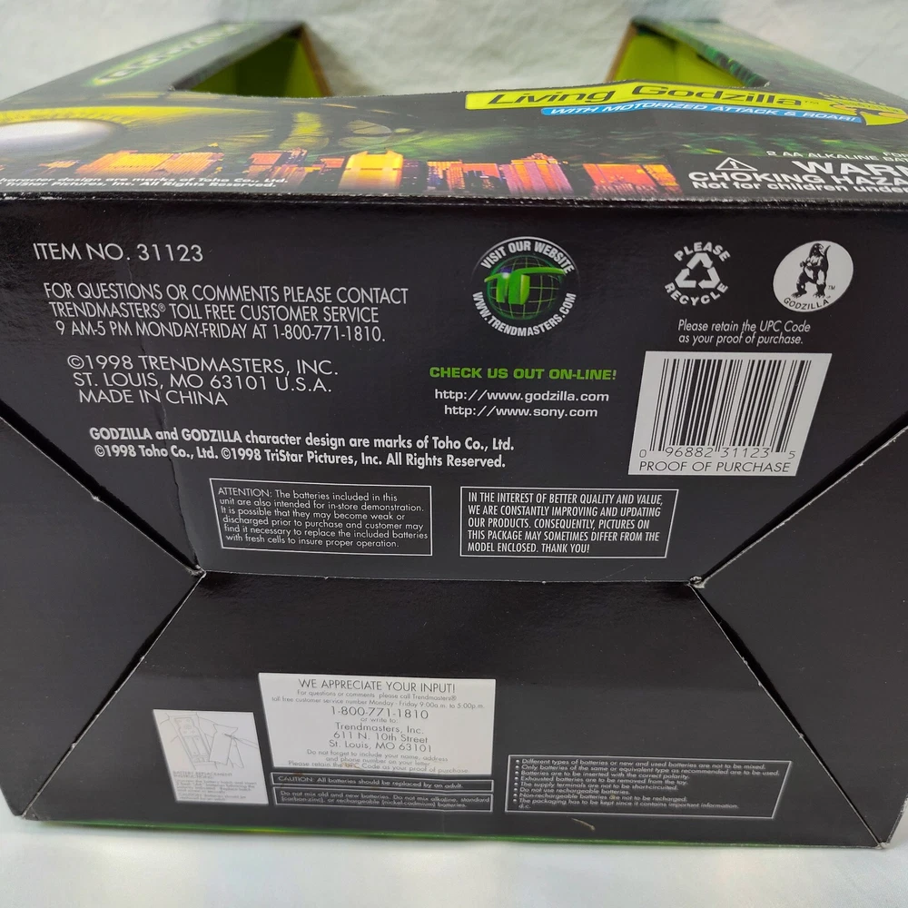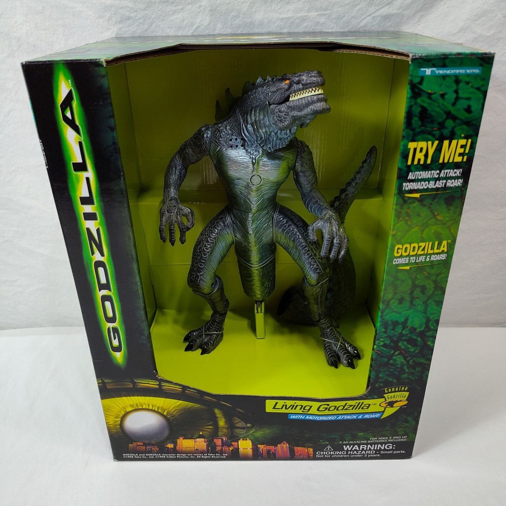 Godzilla Trendmasters Living Godzilla 1998 VTG New In Box The batteries are not working and the electronics are untested. Check pictures for the condition of the box. Contact me with any questions.