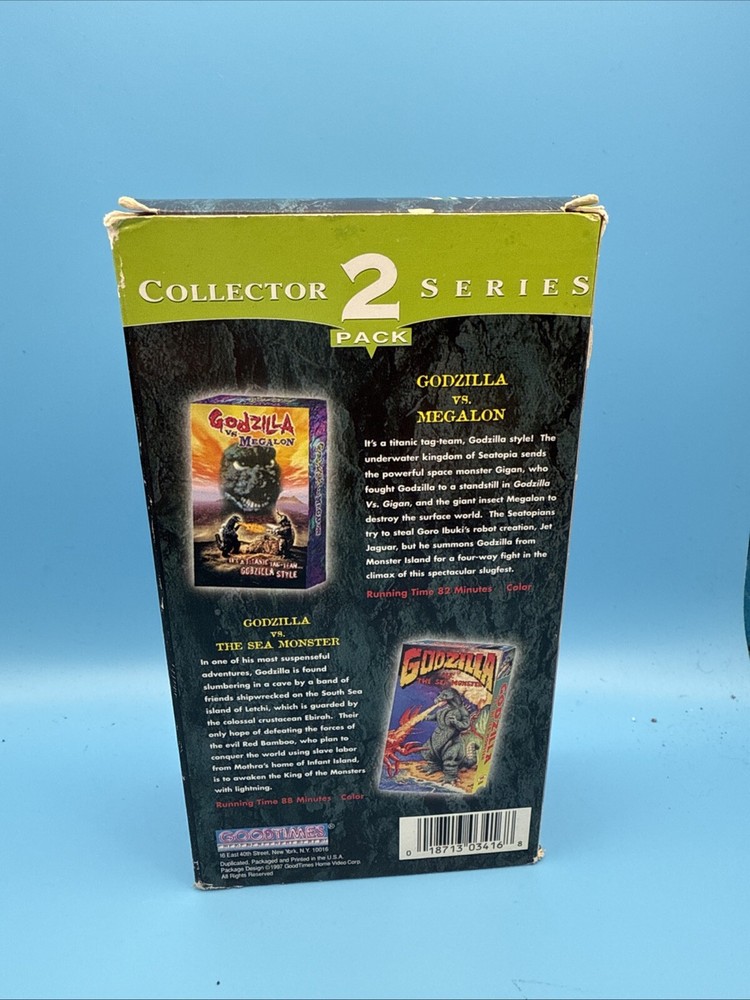 Godzilla VHS 2-Pack vs The Sea Monster & Godzilla vs Megalon Gojira Goodtimes. Condition is Good. Shipped with USPS Media Mail.