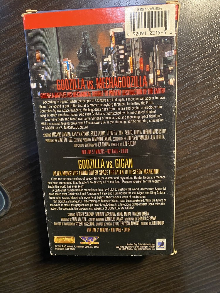 This is a must-have for any Godzilla fan! The VHS set includes four classic films—Mechagodzilla and Gigan—all in good condition with only minor wear on the boxes. The picture quality is solid, and it’s a nostalgic trip back to '90s monster movie glory. Perfect for collectors or anyone who loves old-school kaiju action!